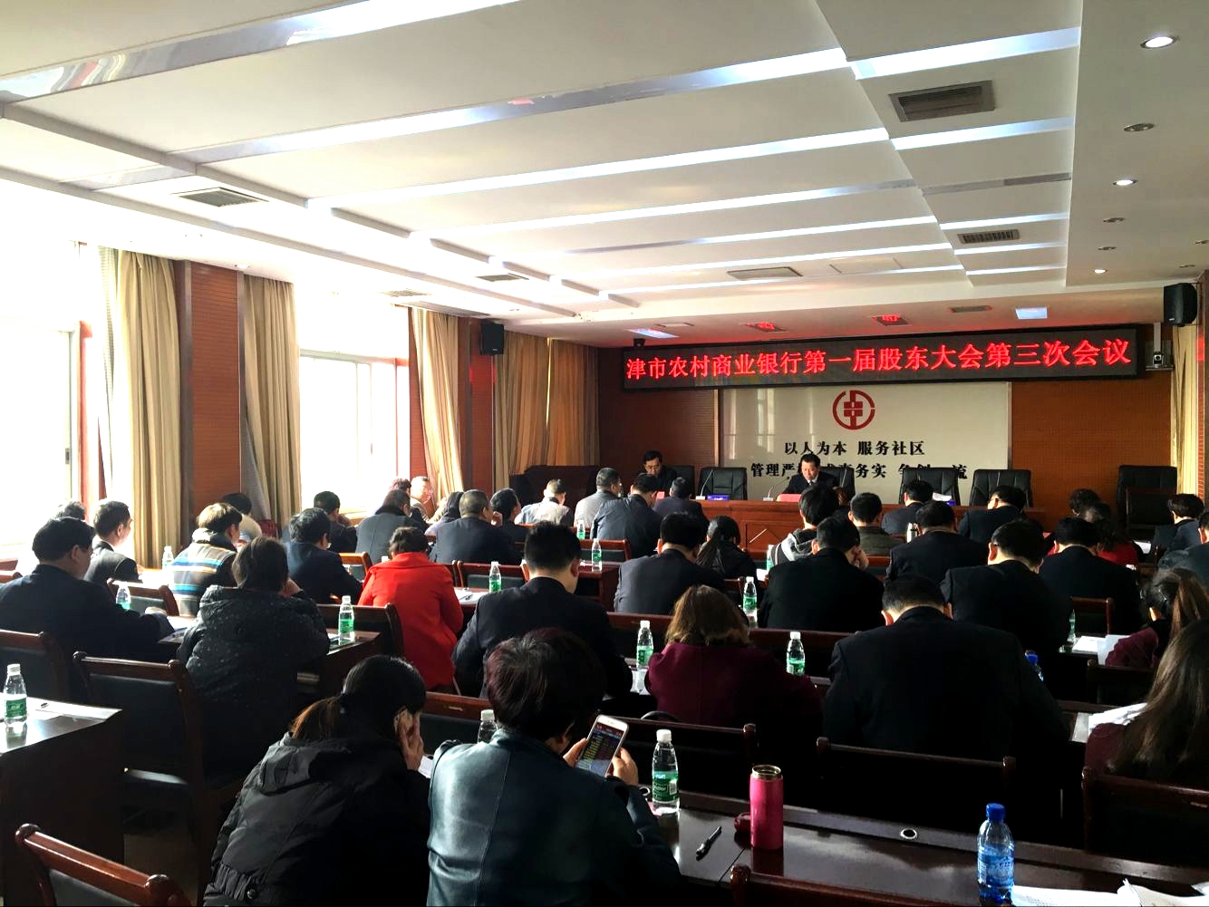 3 月18日,津市农商银行在该行六楼会议室召开了第一届股东大会第三次会议。银监分局领导、该行班子成员、股东代表、见证律师共53人出席了会议。