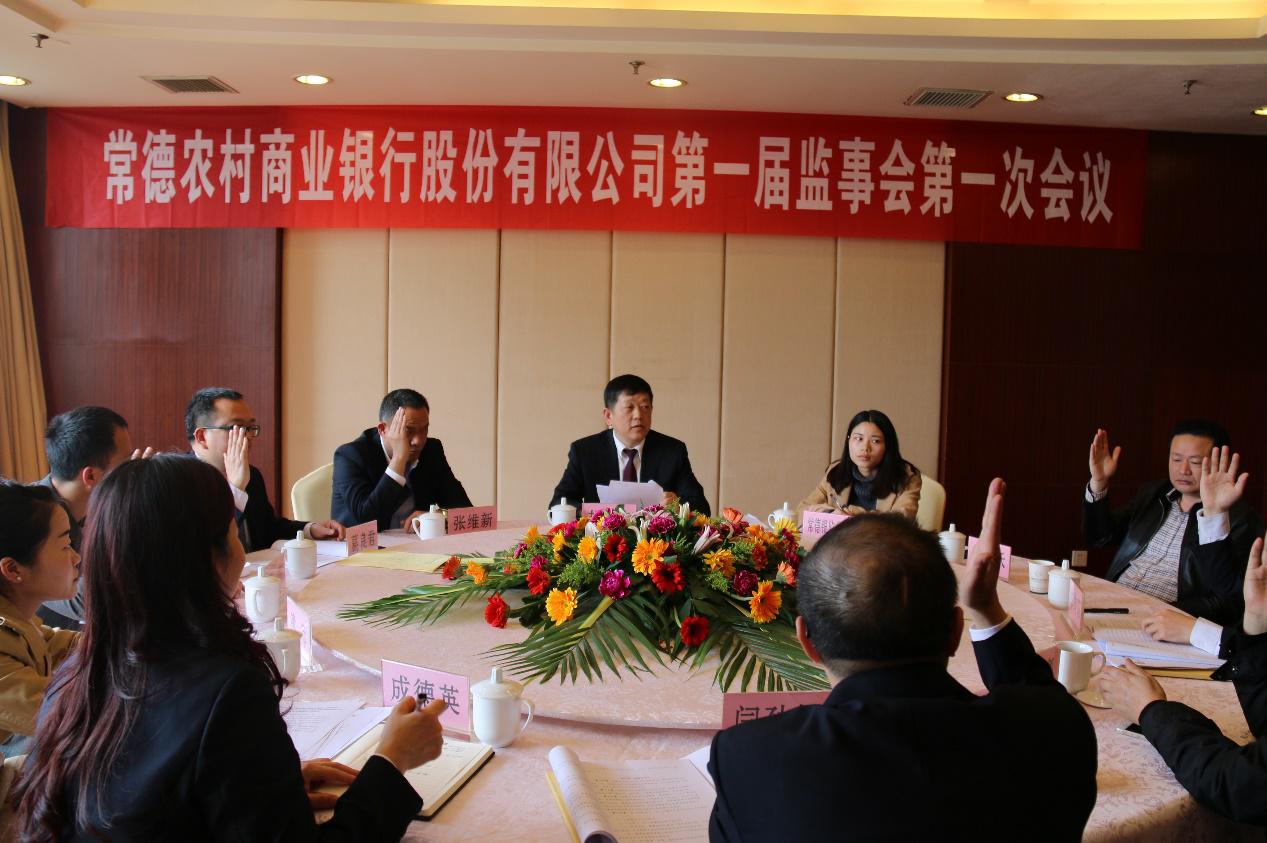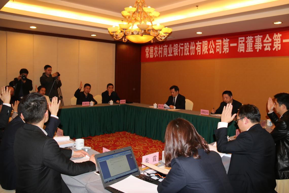 随后分别召开了常德农商银行第一届董事会第一次会议和第一届监事会第一次会议,董事会选举陆化为常德农商银行董事长,董事会聘任万助鸿为常德农商银行行长,聘任王永仕、孙冠华、周德宗为副行长;监事会选举闫劲松为常德农商银行监事长。