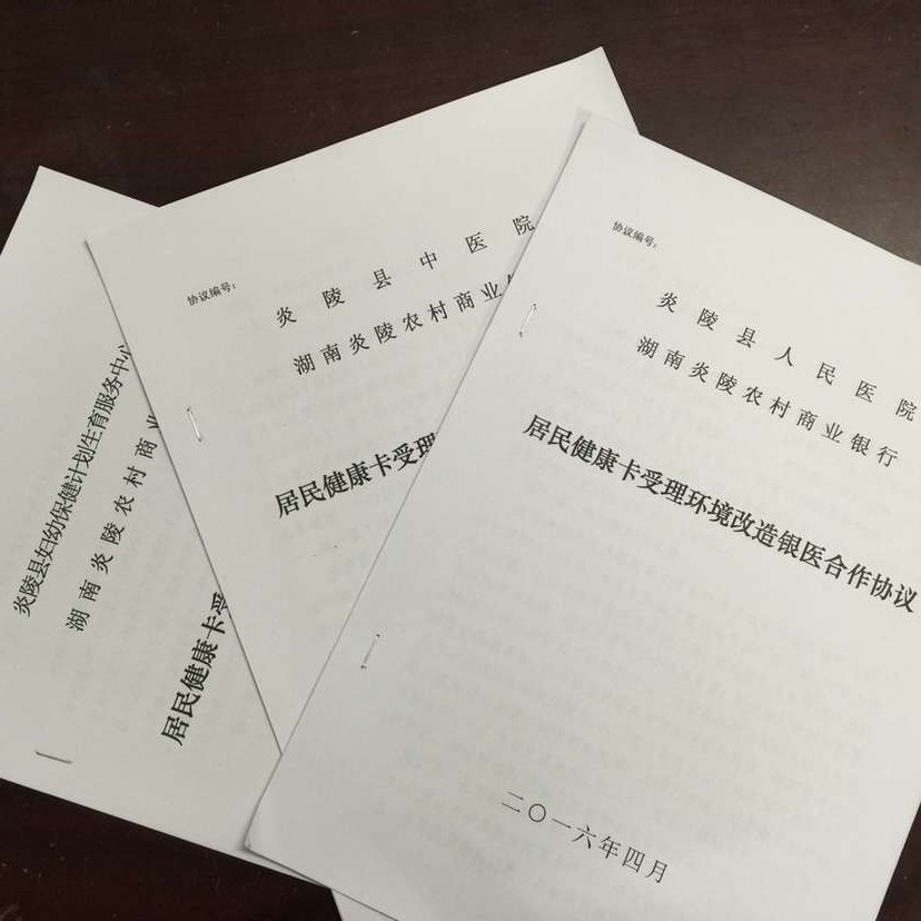 炎陵农商银行成功与三家县级医院签定居民健康卡银医合作协议