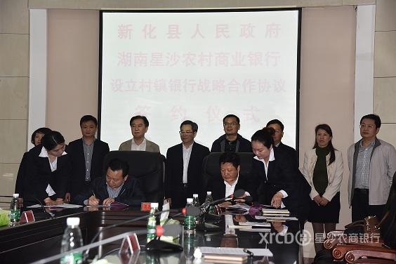 新化县委书记胡忠威、县长邓光吕,娄底市银监局局长胡润生,新化县政府办、金融办、财政、地税、国税、国土、人行、信用联社等相关职能部门共同见证,星沙农商银行行长何伟、副行长谭应红,办公室、财务基建办等负责人陪同参加。
