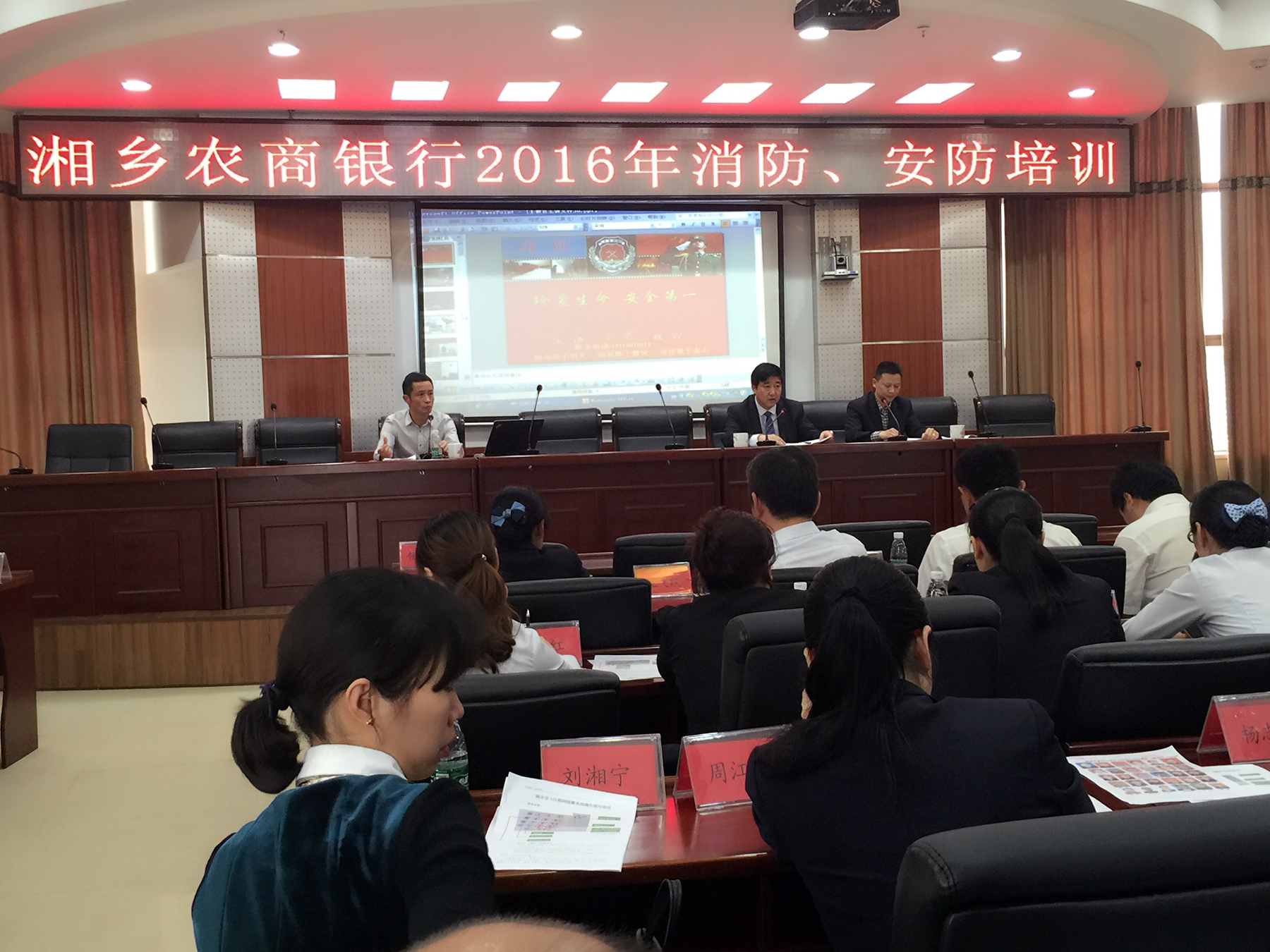 4月14日下午,湘乡农商银行在七楼会议室举行以“全民关注消防、生命安全至上”为主题的安保、消防专题培训班。总行监事长谷春林、安全保卫部总经理、各支行副行长及网点安全员、消防员共计75人参加培训。此次培训特邀湖南省消防协会专家和湘乡市公安报警系统专家进行了授课。