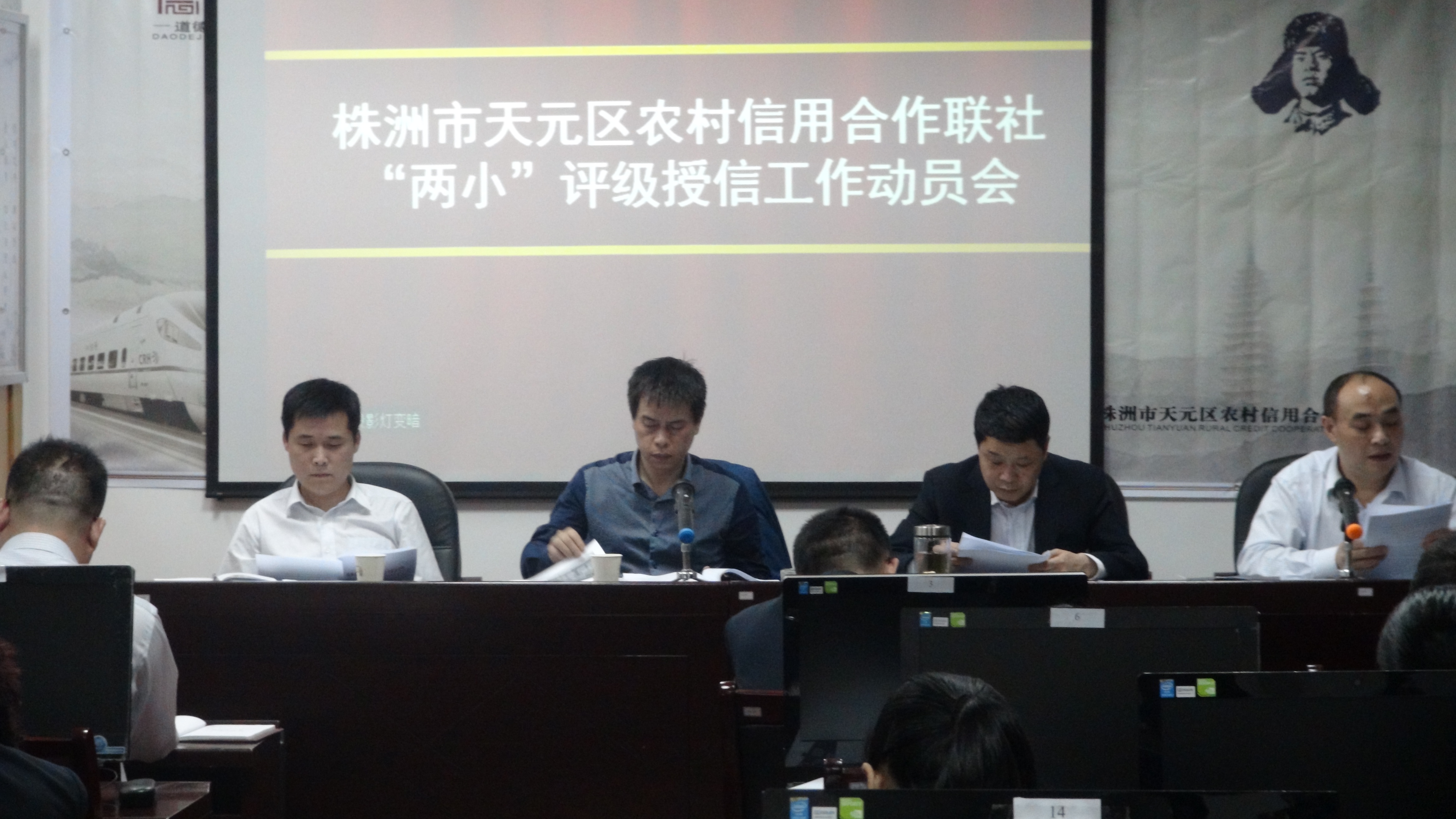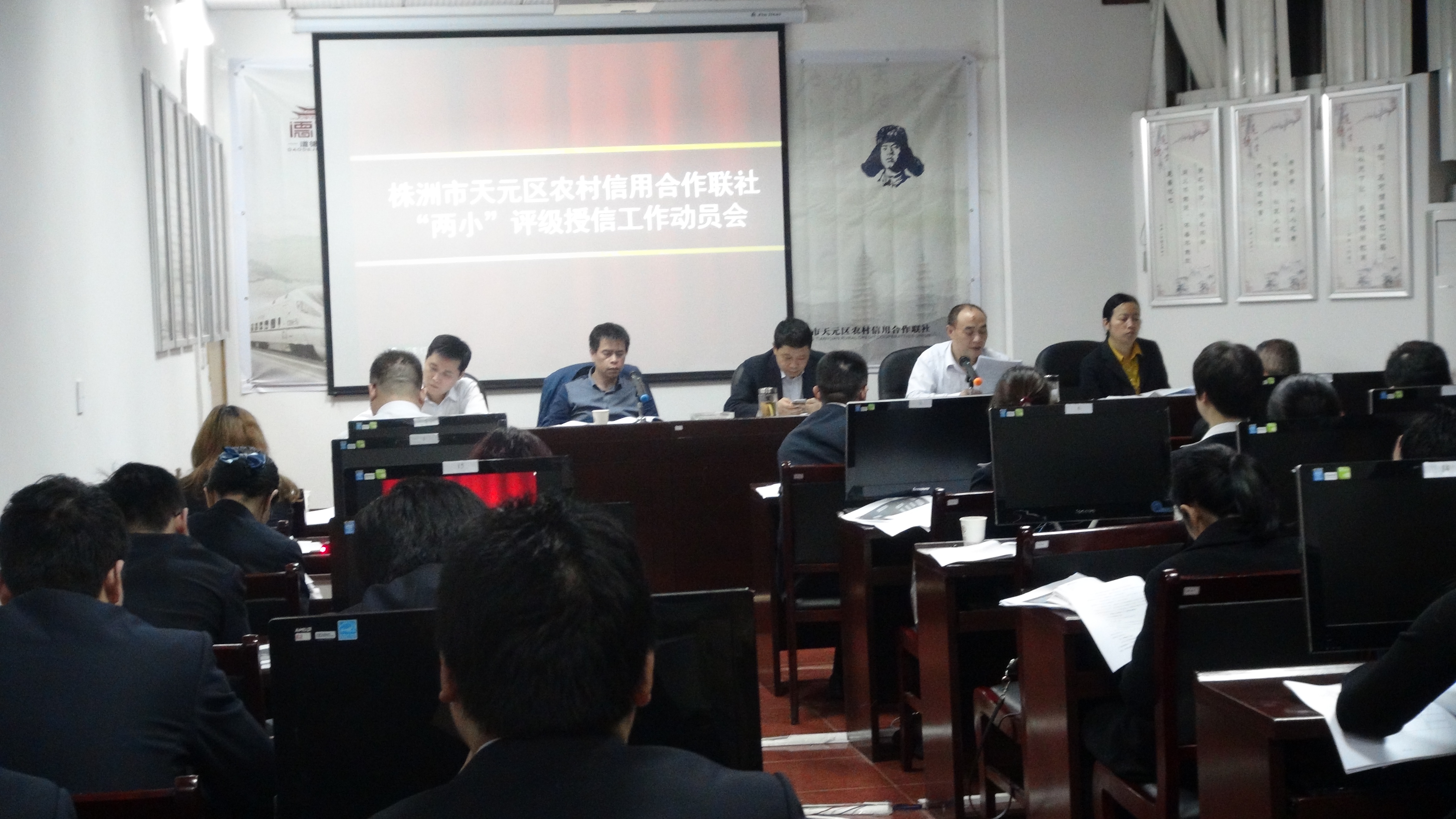 为认真落实省联社工作会议精神,加快业务发展,拓展基础市场,提升品牌形象。4月26日,天元区联社组织机关全体人员及各信用社主任、客户经理、委派会计、分社负责人召开了“两小”评级授信工作动员大会,就“小额农贷”“小额商贷”评级授信工作进行动员部署。
