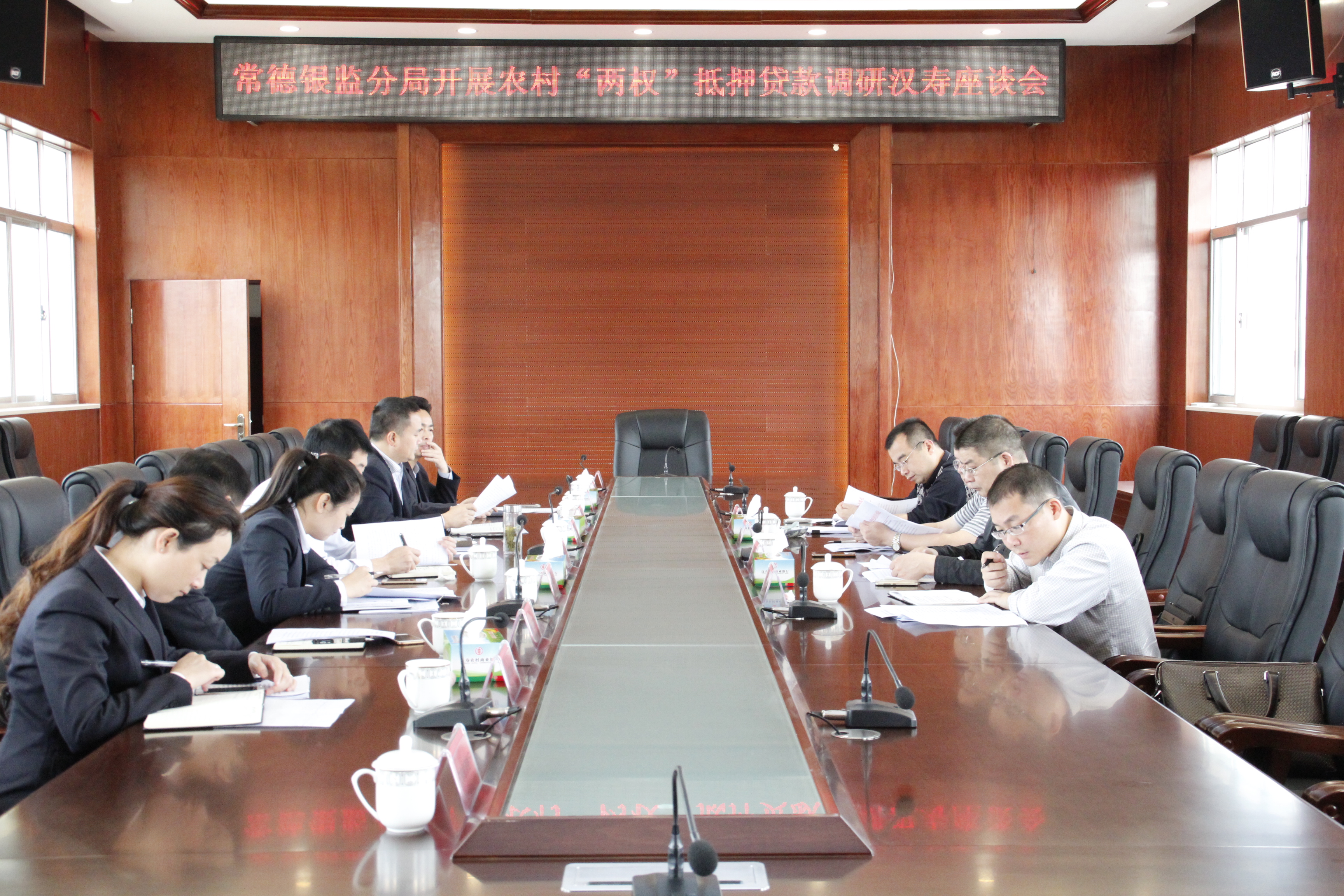 5月10日,常德银监分局局长聂先明一行到汉寿联社就农村土地承包经营权和农民住房财产权(以下简称“两权”)抵押贷款工作开展调研,并与汉寿联社、汉寿农行、汉寿邮政3家金融机构进行座谈。