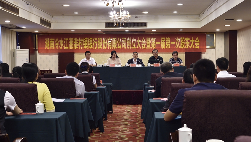 5月25日上午,湖南冷水江湘淮村镇银行创立大会暨第一届股东大会第一次会议在冷水江市博尼尔大酒店顺利召开。