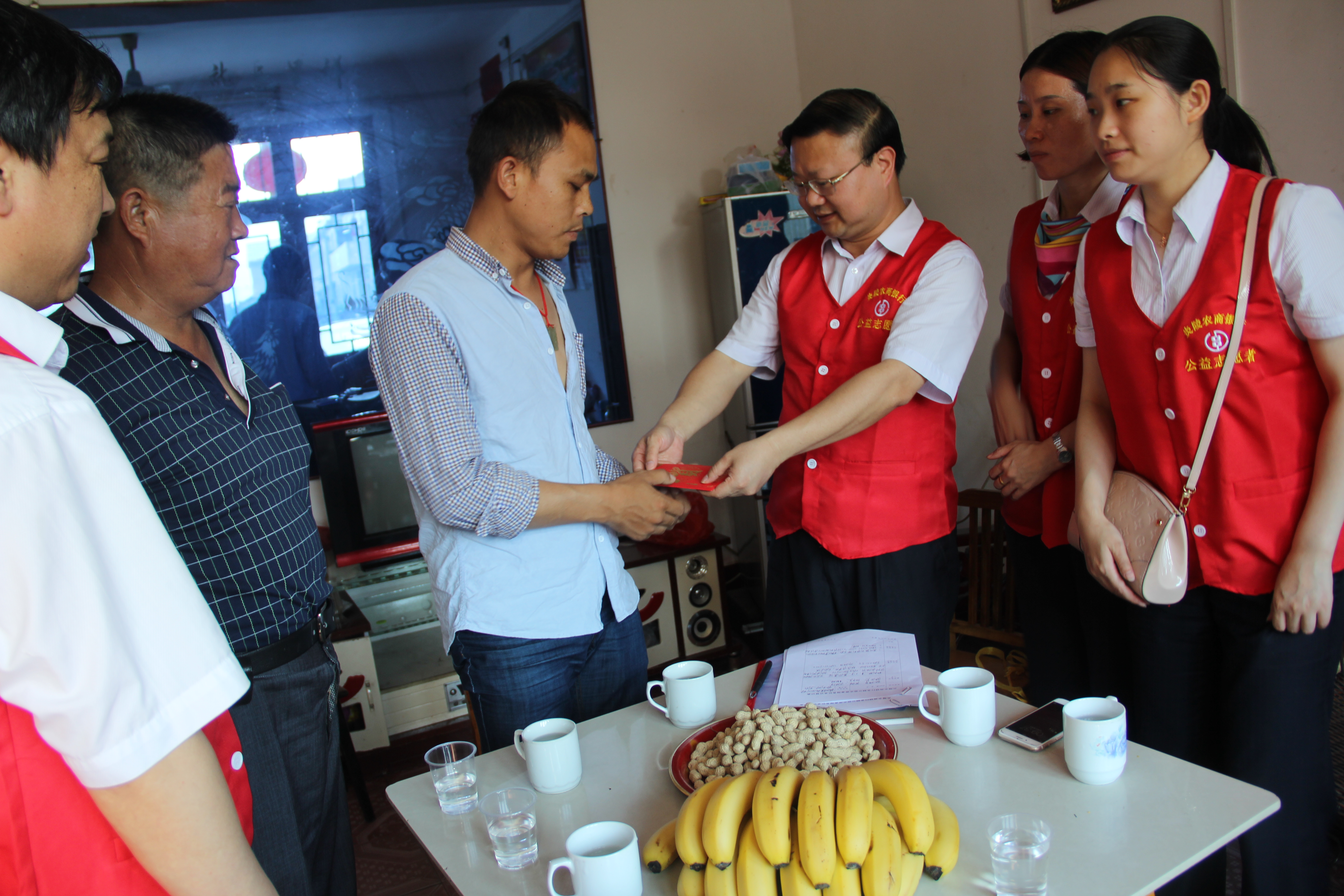 陪同前往的村支两委干部及患者家人详细介绍了患者的基本情况。段利波,霞阳镇枧田洲村人,31岁,2015年6月份因身体不适检查身体发现患有尿毒症,先后在湘雅医院及县中医院治疗,现已花费各项治疗费用20余万元,目前每周要到县中医院透析2次,每次费用约为600元,而家里的主要收入来源为妻子在外面打工和年迈父母在农村种田的微薄收入,段利波作为家里的顶梁柱,不仅不能为这个家家减轻任何负担,而且其高昂的医疗费用使这个本来幸福的家庭现已不堪负重,且家里还有一个正在上幼儿园的4岁小孩。屋漏偏逢连夜雨,段利波的父亲于几年驾驶三轮车不幸从30多米的山崖连人带车滚下,造成头肝肺都严重创伤、双腿摔断,使这个风雨飘摇的家更苦不堪言。唐谭生,鹿原镇澎溪村人,39岁,未婚,3年前突发脑梗塞,生活不能自理,只能每天躺在床上靠药物稳定病情,主要由年过七旬且身体状况也不太好的父母照顾。因患病治疗现已花费20余万元,且很大一部分费用为向亲戚朋友所借,为尽量节省治疗费用现在只能在家里用药物稳定病情,而家里主要的收入来源为年过七旬的父母种田种地及社会各界的爱心帮助,高昂的医疗费用使这个本来就清贫的家庭雪上加霜。炎陵农商银行金融志愿者们得知这个情况后,积极发动和号召志愿者们捐款并组织前往患者家中看望段利波和唐谭生,及时将爱心款送到患者手中。