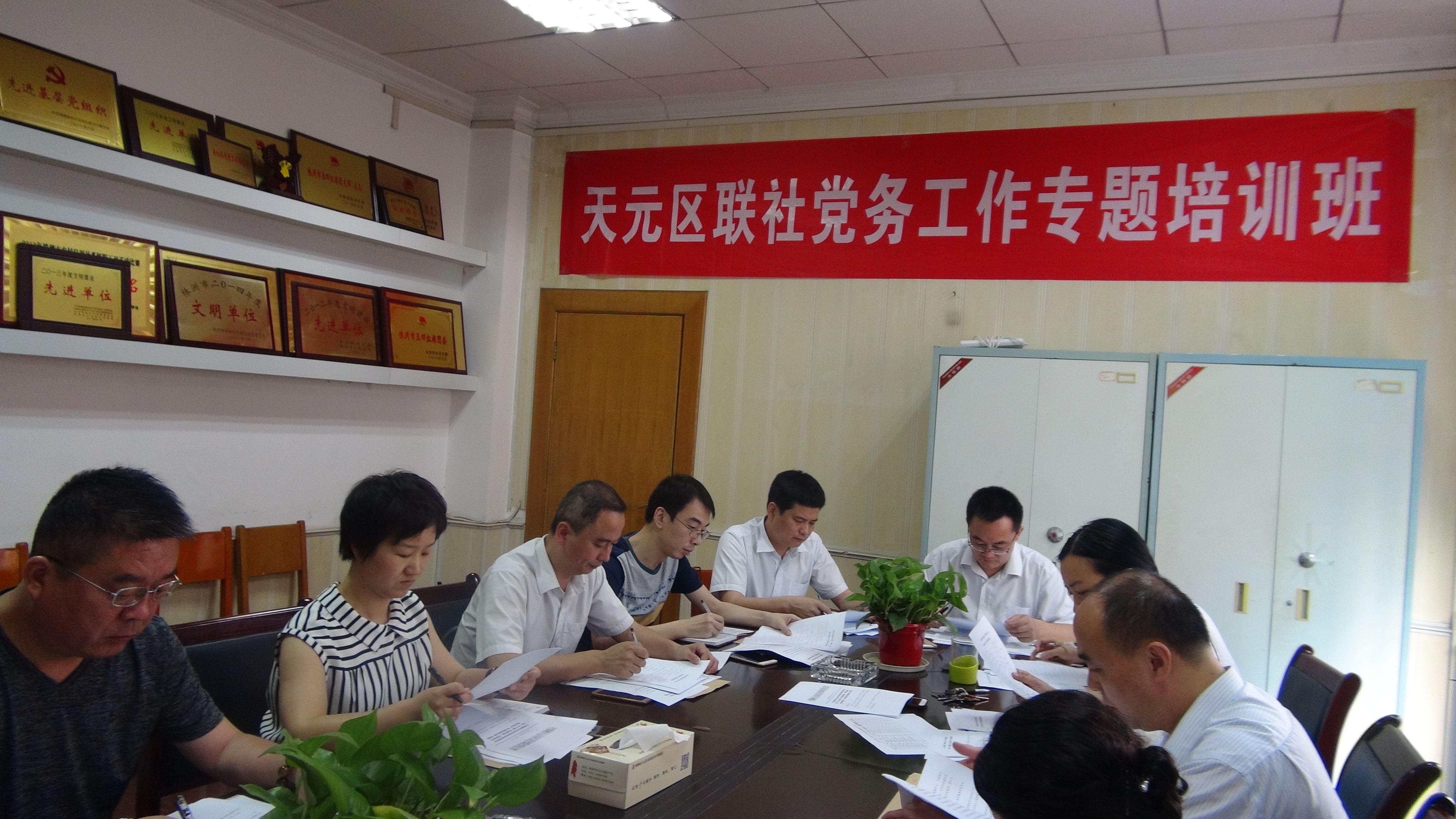 为扎实推进“两学一做”学习教育工作,强化基层党组织建设,6月1日,天元区联社举办了一期党务工作专题培训班。联社党委副书记、主任王晓红同志出席并主持培训,党委委员、副主任田英同志授课,辖内3个基层支部书记及各支部委员参加学习培训。