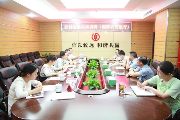 5月31日,省政府金融办银行处副处长卜超峰在湘潭市政府办副主任汤泽君、省联社湘潭办事处副主任周鹤鸣陪同下,深入湘潭农商银行开展调研,并举行座谈会。