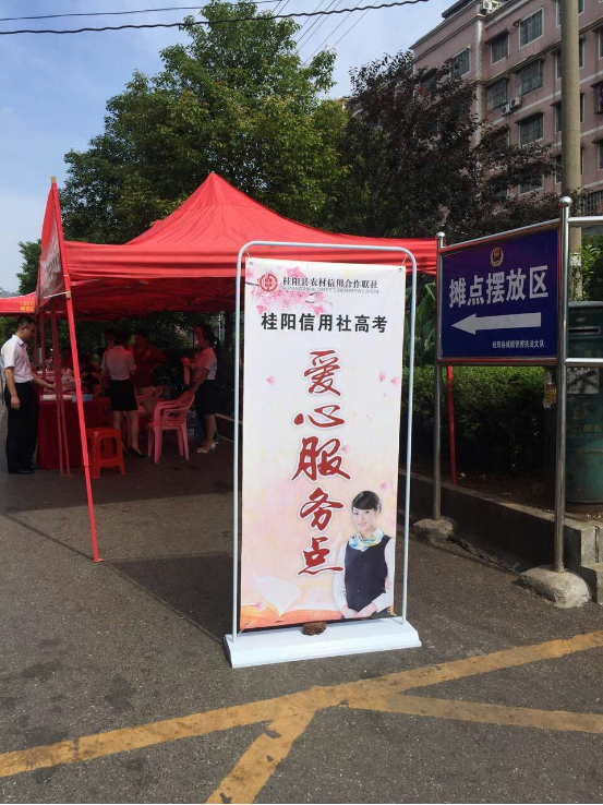 6月7日-8日,为给考生家长提供一个休息的候考场所,桂阳联社在主要考点桂阳一中和三中门口设立爱心服务站。