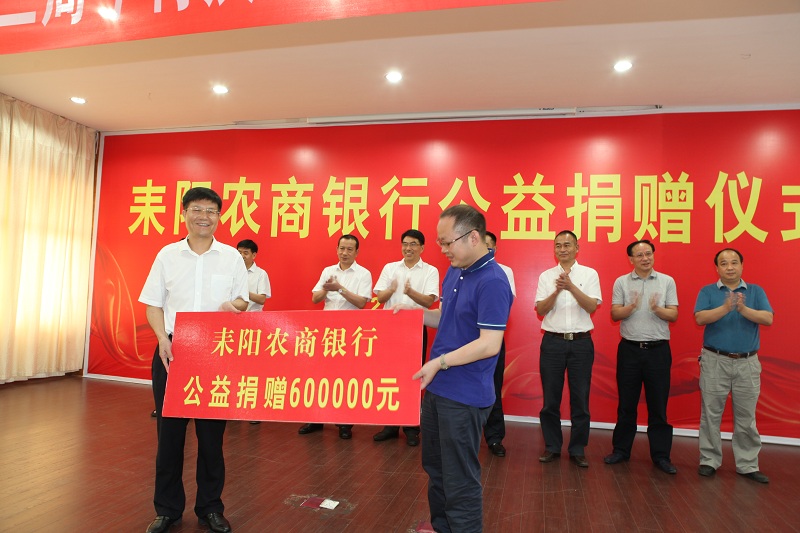 会议期间,该行董事长蒋生文代表耒阳农商银行向耒阳市狮子岭公园承建单位负责人耒阳市城管局局长郭伟同志,捐赠狮子岭公园建设公益金60万元人民币,资助公园公益公共基础设施建设。