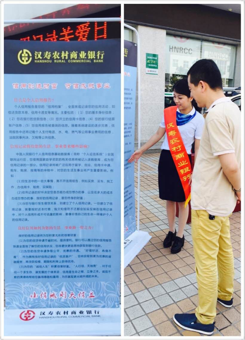 “大叔,您了解信用记录的一些小知识吗?”“大哥,过来扫一扫,测一测,摇一摇吧,意外惊喜等着您哦!”……6月14日,汉寿农商银行成立宣传小分队,开展了一场以“6.14信用记录关爱日—珍爱您的信用记录”为主题的宣传活动。