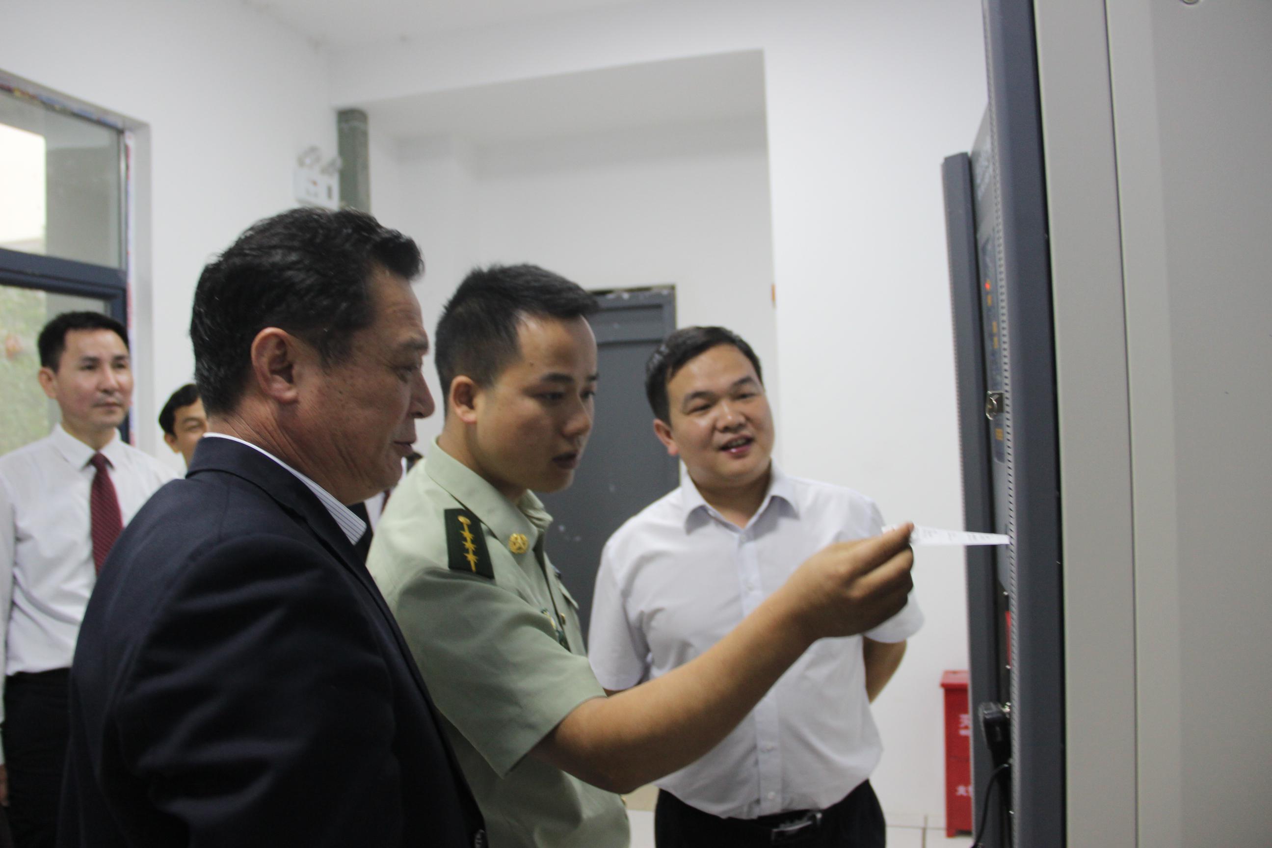 图为东安农商行监事长尹学龙陪同武警东安消防大队领导检查本行消防设施