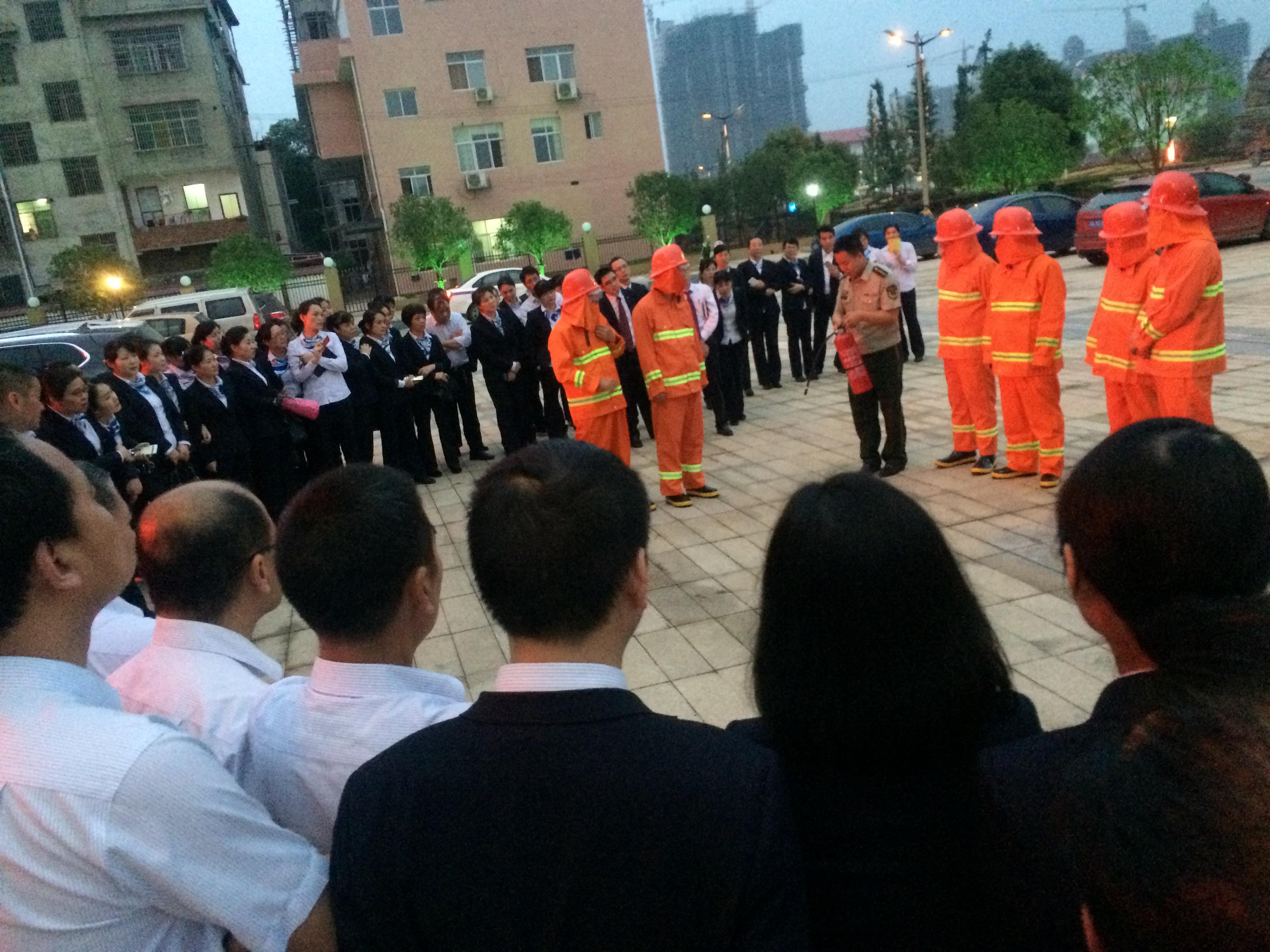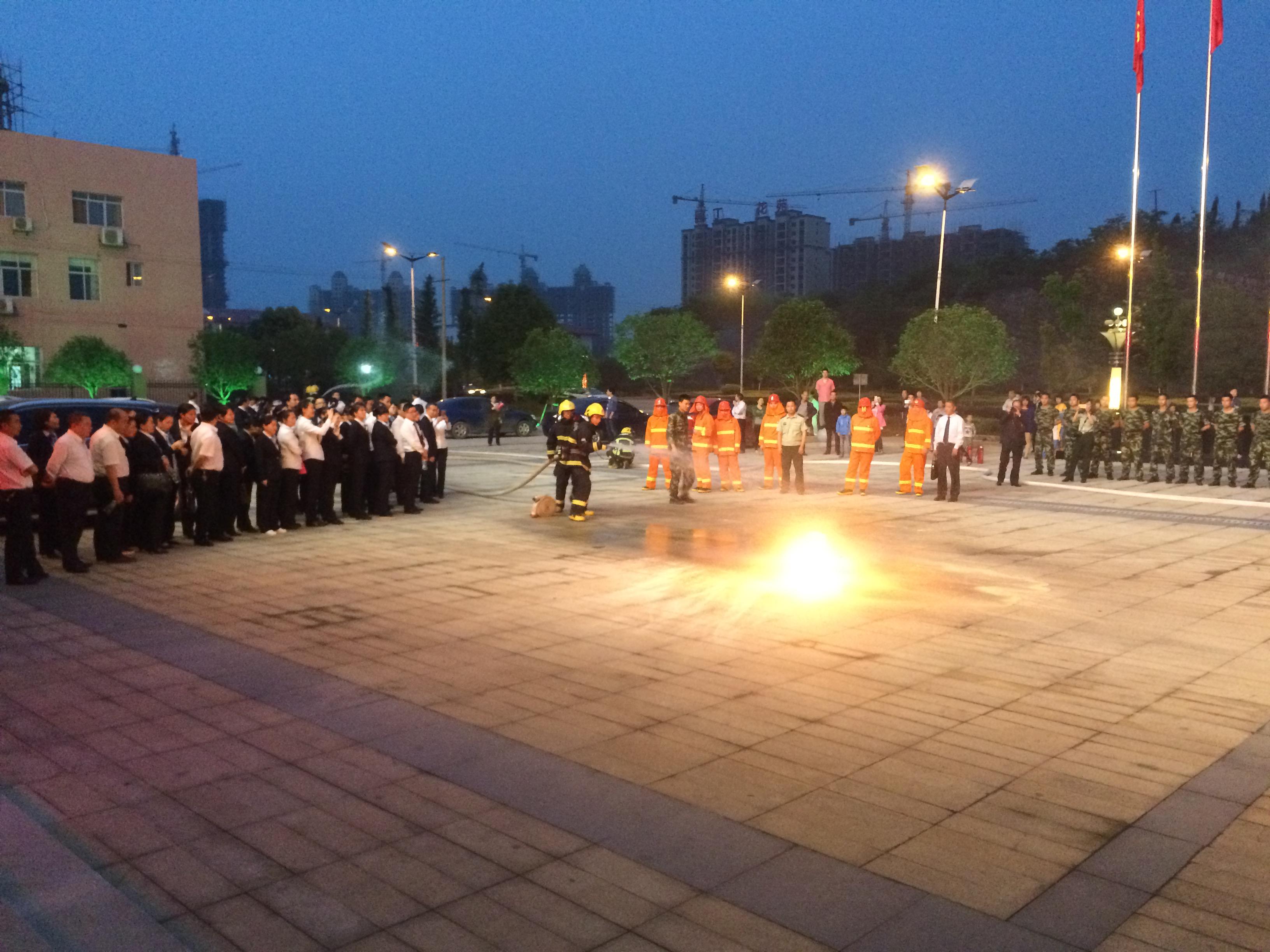 图为武警东安消防大队官兵与东安农商行员工共同进行消防演练