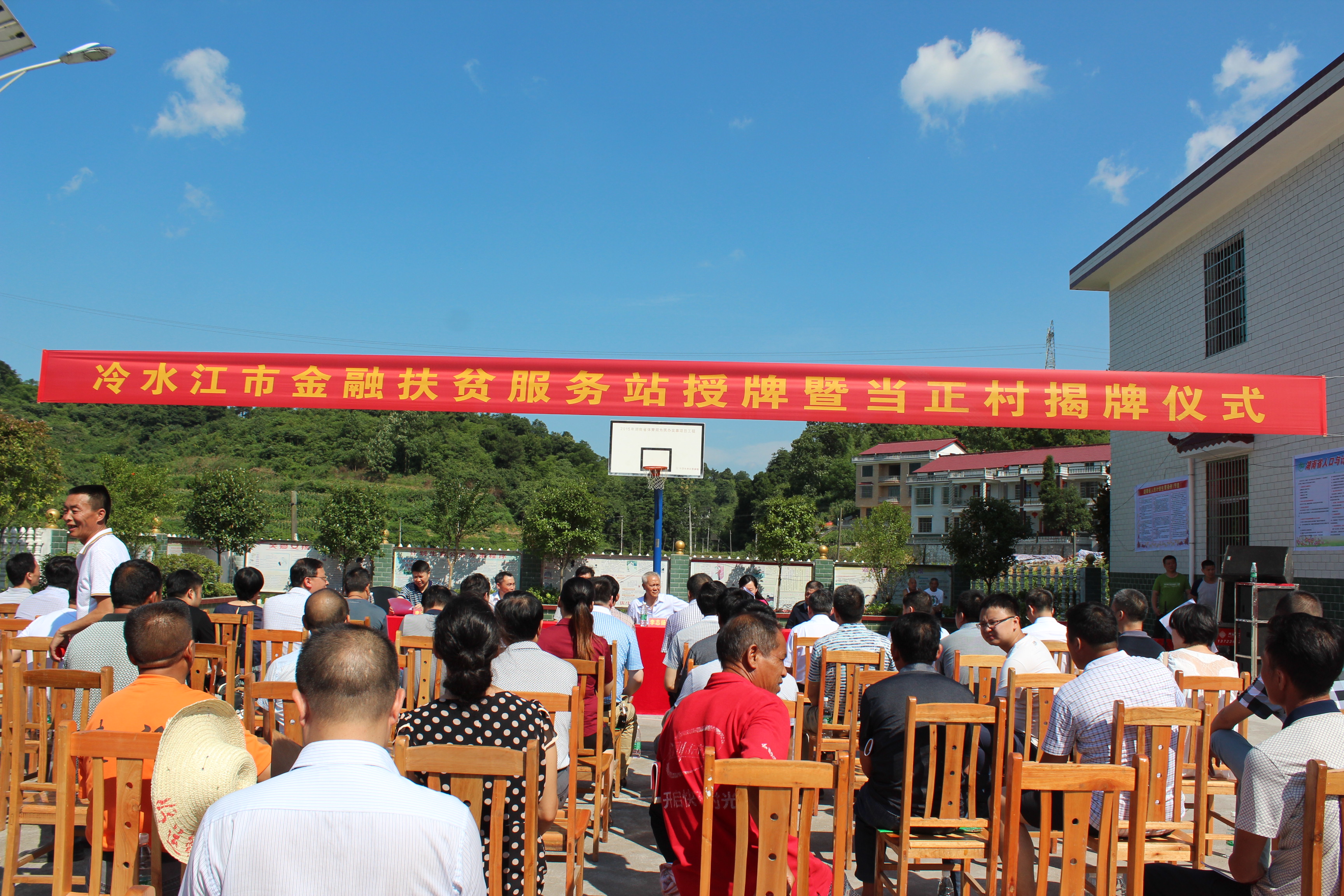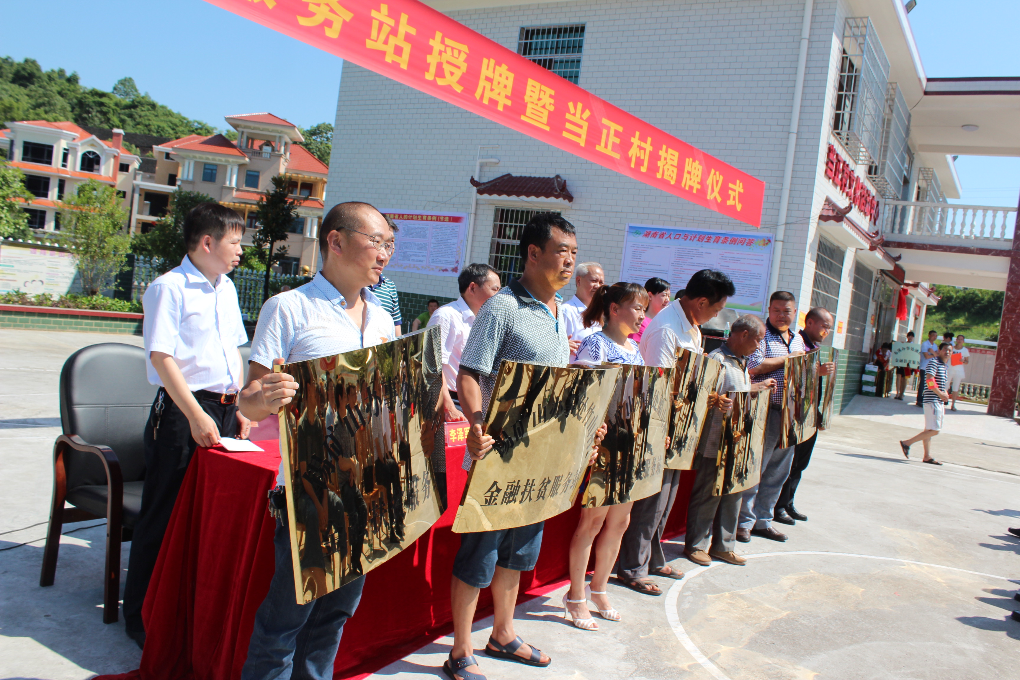 6月22日上午,以冷水江农商银行为主联络行的冷水江市首家金融扶贫服务站揭牌仪式在金竹山镇当正村举行,娄底市政府副秘书长彭斌鹏、人民银行娄底中心支行行长李志扬为当正村金融扶贫服务站揭牌,并为樟木村、福源村、竹山村等其余十三个省级贫困村金融服务站集中授牌,其中冷水江农商银行为主联络的有六家。