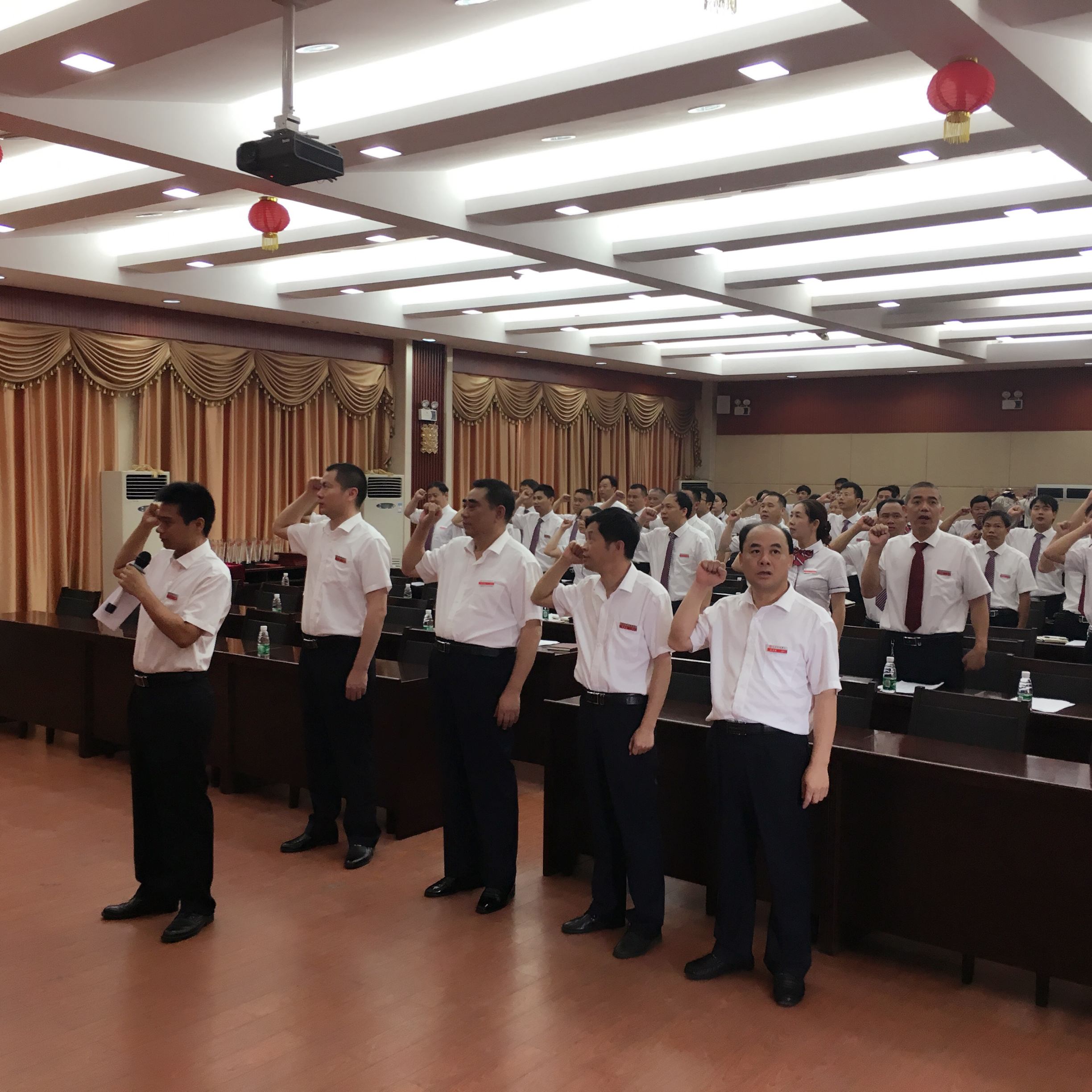 大会在雄壮的国歌声中拉开序幕。在振奋人心的国歌声的余音中,行党委办主任毛伟带领全体参会党员和新吸收的预备党员重温了入党誓词,大家在党旗下再一次感受了入党誓词的神圣和鼓舞。