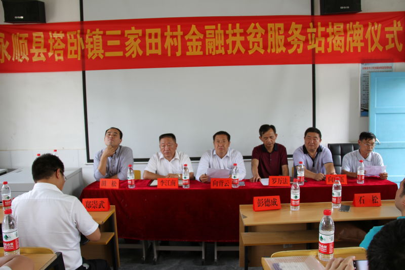 6月29日,永顺农商银行首个金融扶贫服务站在塔卧镇三家田村揭牌。