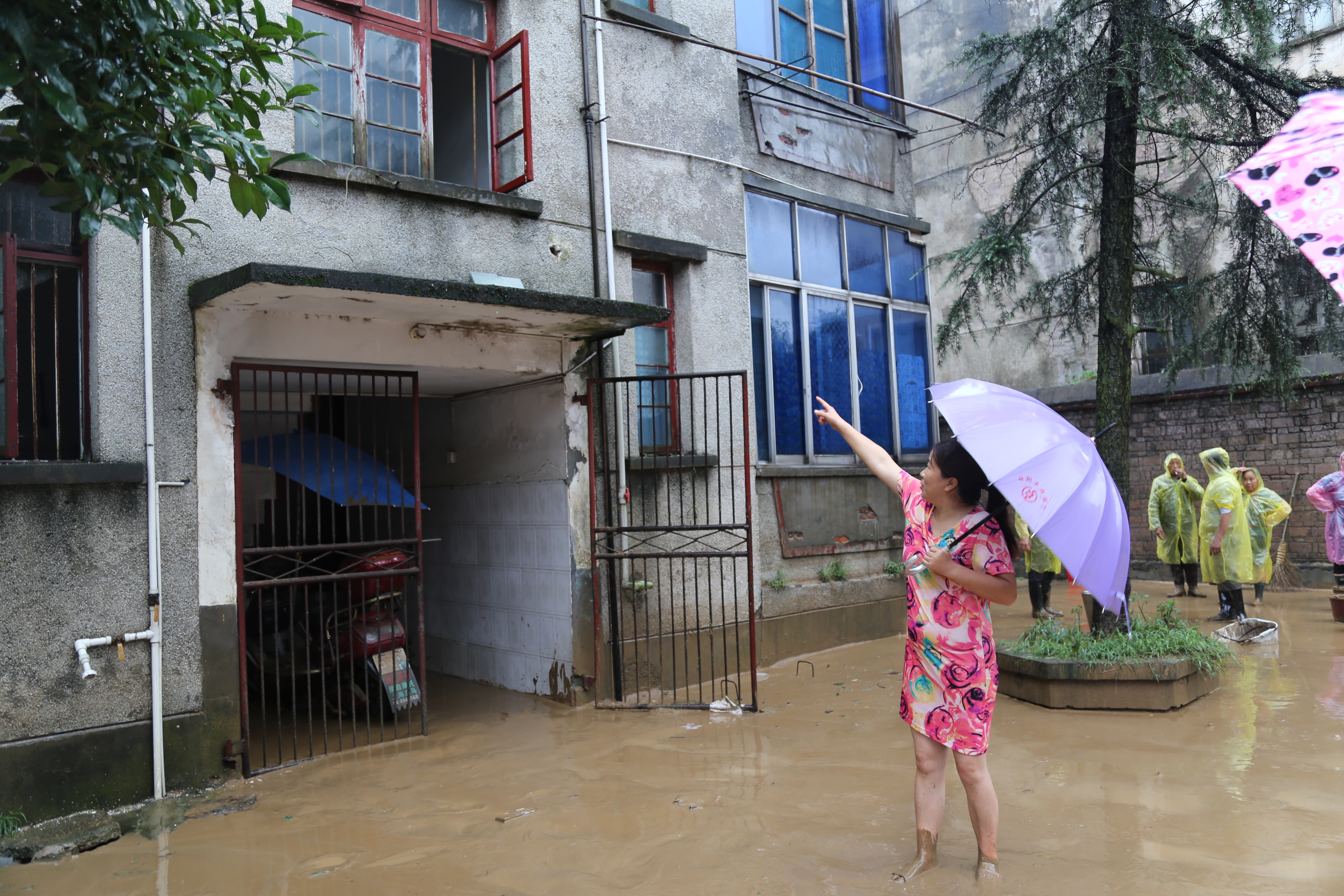 (图为7月5日上午洪水退去后,总行领导第一时间到泥江口支行视察慰问并指导灾后恢复工作)
