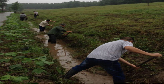 7月3日,不停歇的暴雨,不减弱的雨量。支行已无外勤可派,我领着大堂经理走上河堤,跟着村里人一同拿上锄头,开沟除草。