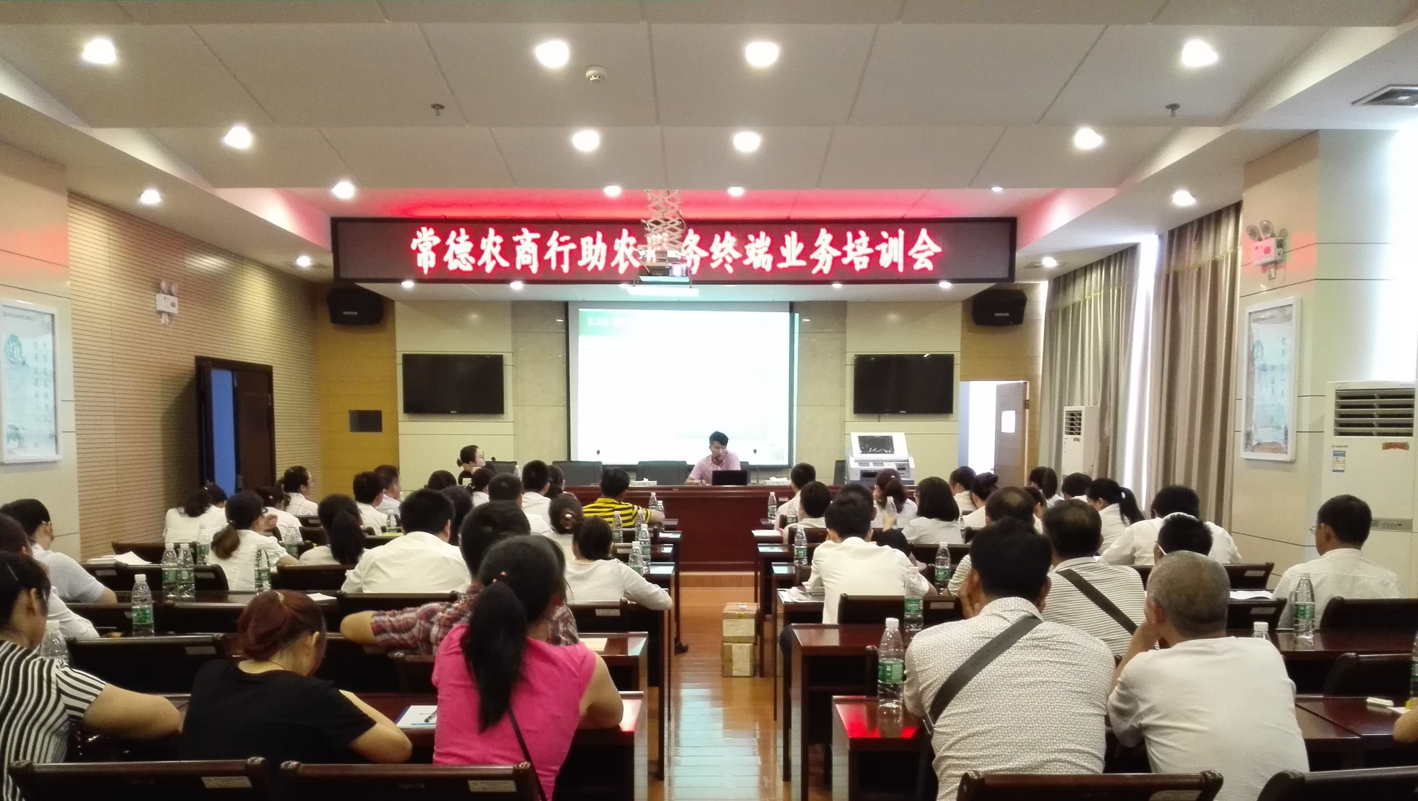 7月8日上午,常德农商银行组织召开“助农服务终端业务培训会”,来自17个乡镇的27位助农金融服务点商户及该行乡镇、城郊片区支行的委派会计共63人参加培训。