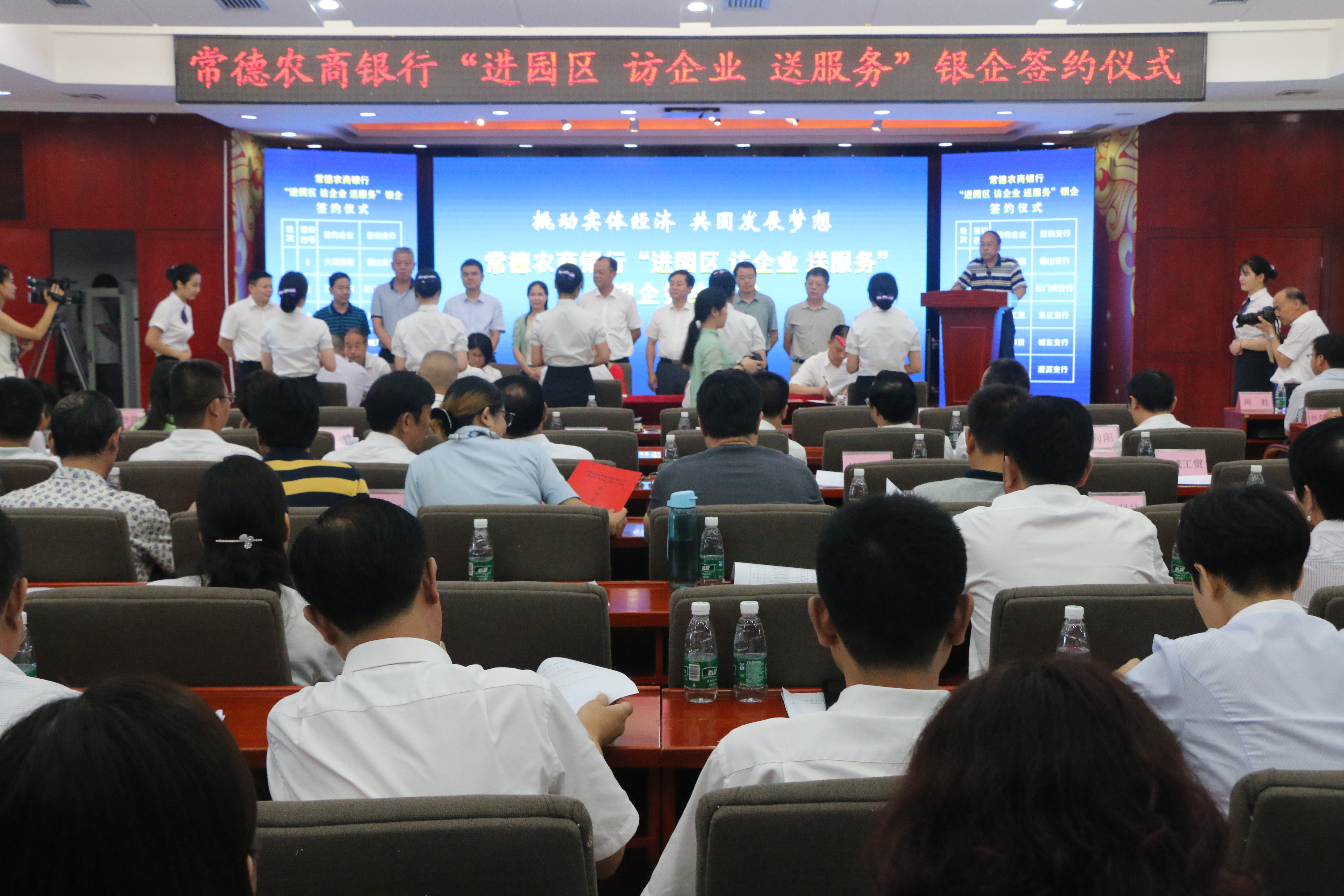 7月19日,常德农商银行举行“进园区 访企业 送服务”银企签约仪式,与50家园区企业签订意向、授信和用信协议12.75亿元