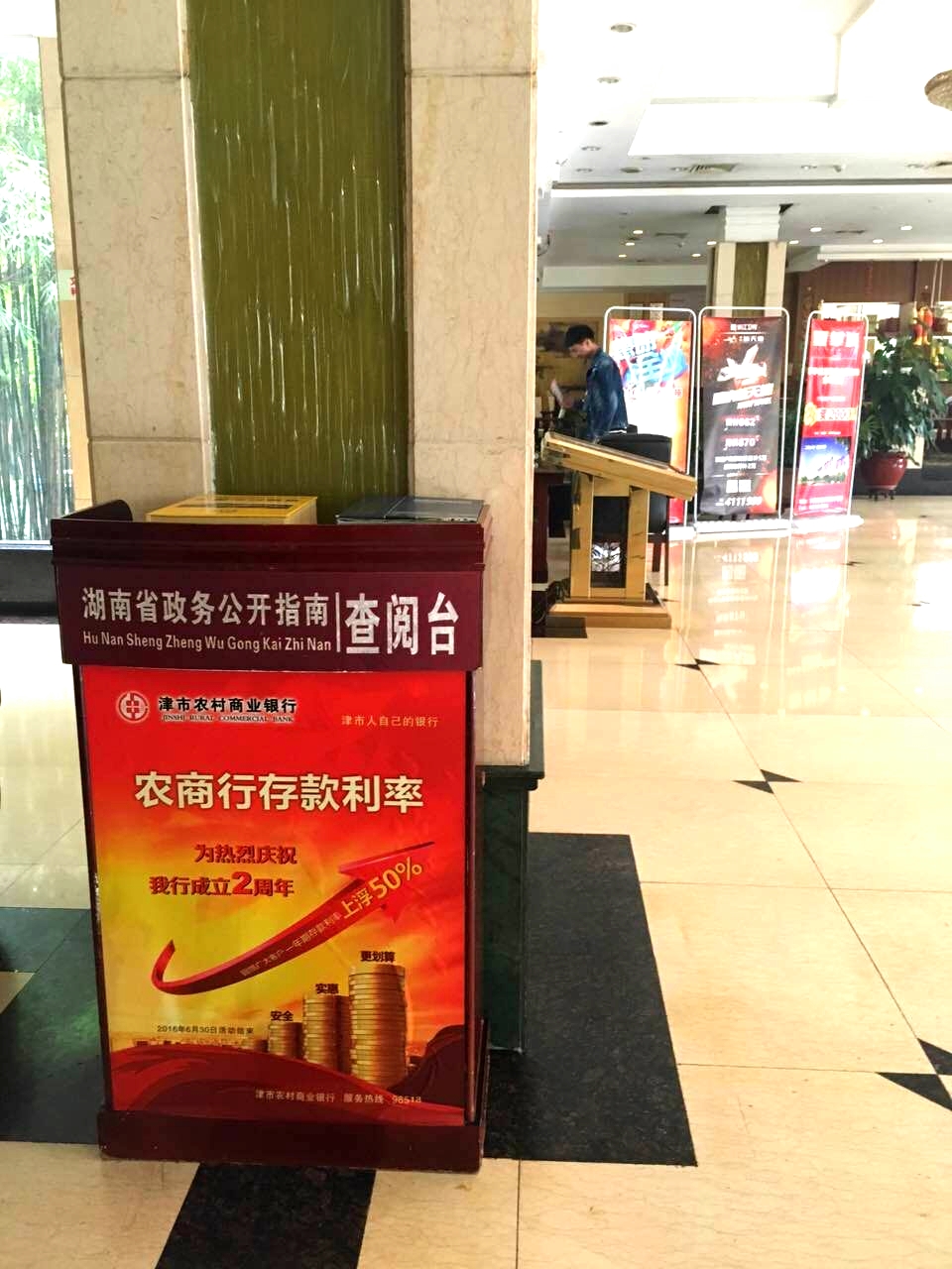 政务宣传台是政府对各项工作内容及进程公开透明化,方便群众了解、查询信息、实施监督的重要平台,一般设立在单位或人流量较大的公共场所。该行把握这一良好宣传渠道,聘请专业广告公司设计制作了多个宣传海报版面,对该行的业务品种和经营理念进行宣传,有效提升了该行社会知名度和好评度。