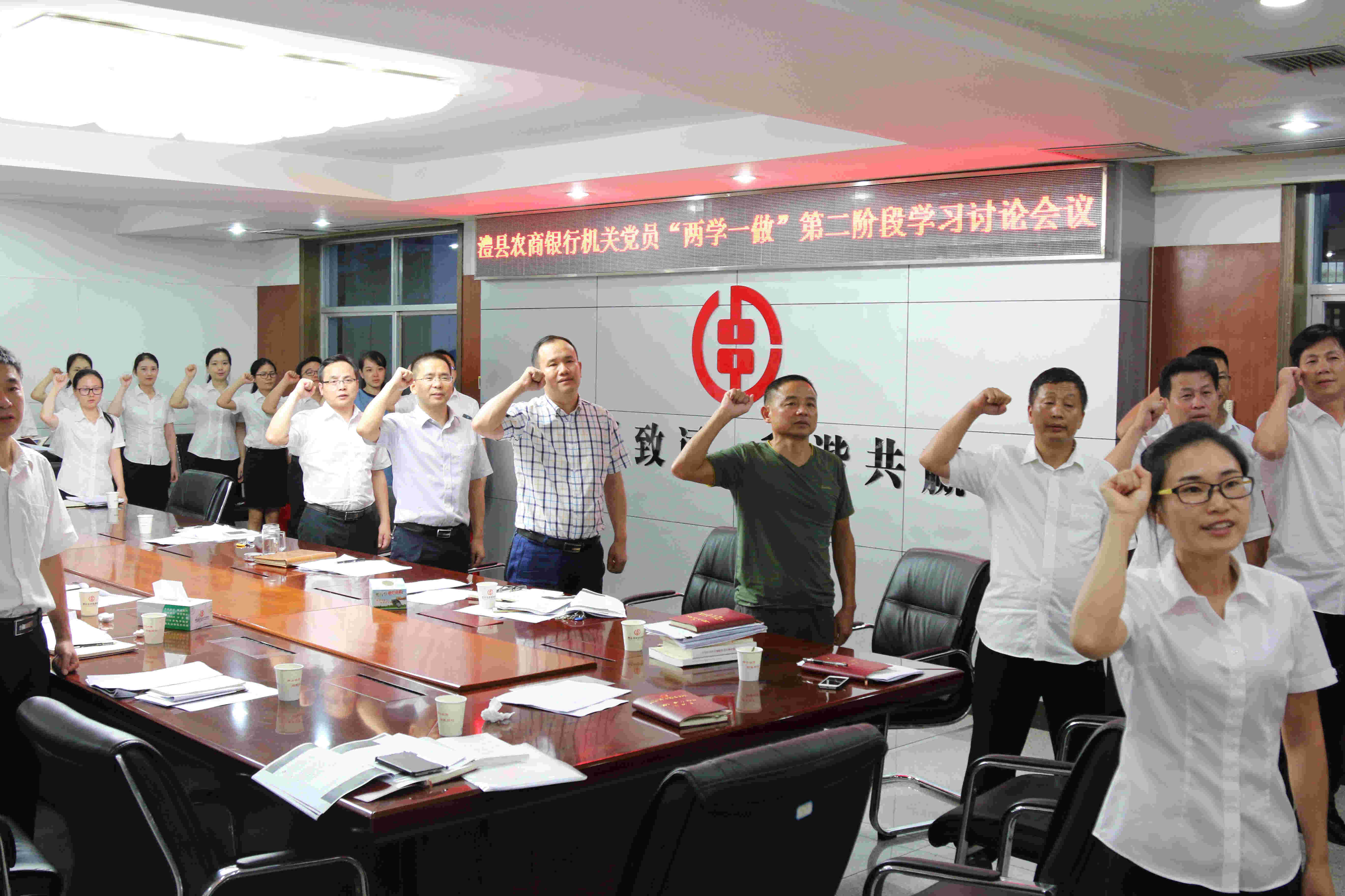 “我志愿加入中国共产党,拥护党的纲领,遵守党的章程……”。7月25日,澧县农商银行组织全体机关党员开展了“不忘初心,继续前进”重温入党誓词“两学一做”第二阶段学习讨论活动,51名党员面向党旗,庄严地举起右手,向党旗宣誓,表达他们永远忠诚于党的决心。