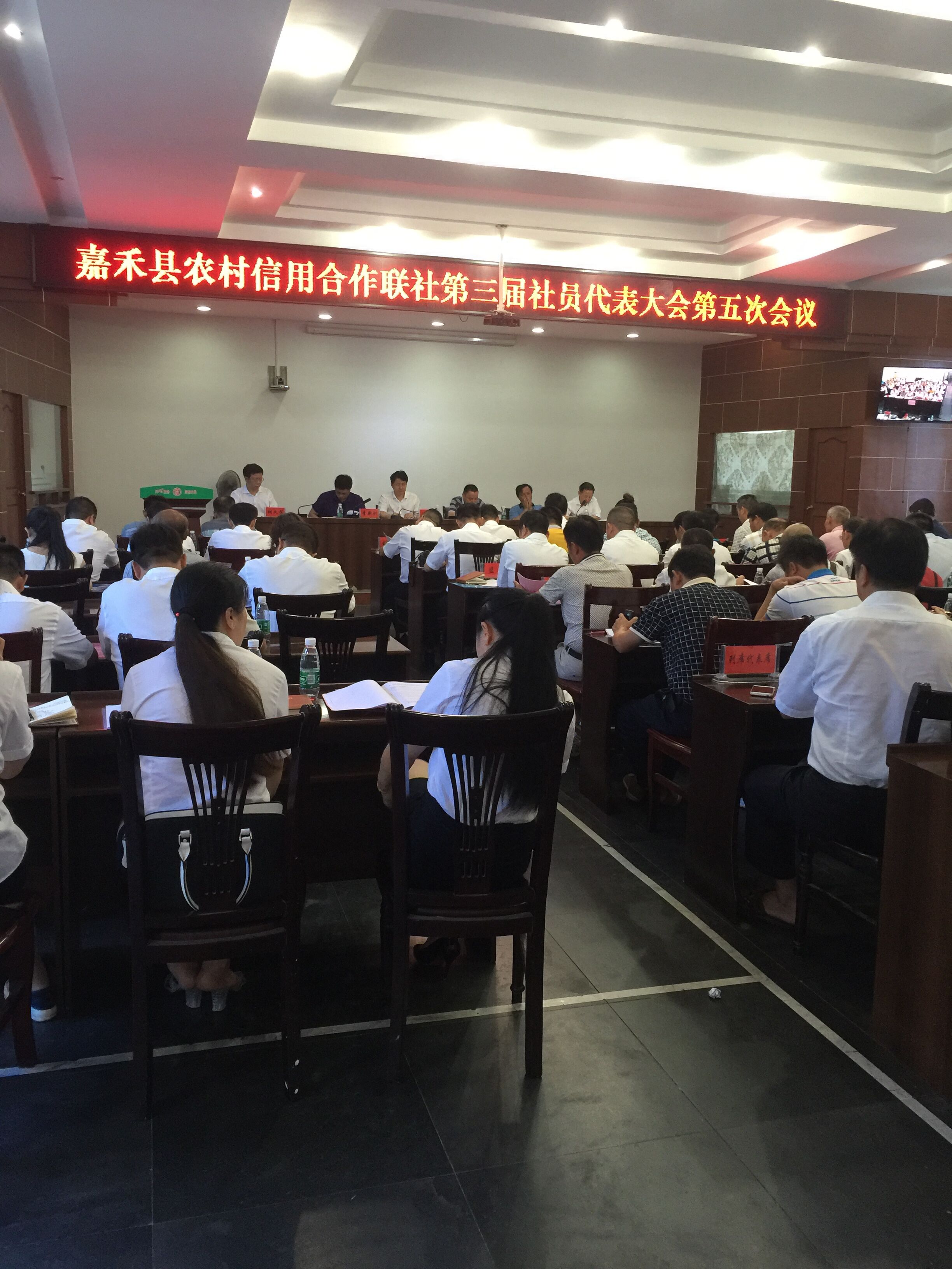 7月29日上午,嘉禾县农村信用合作联社第三届社员代表大会第五次会议在联社二楼会议室顺利召开,县政府副县长蔡景庆,郴州市银监分局合非科科长李新刚及郴州办事处相关领导出席了会议。53名社员代表、各信用社主任及机关部室负责人总计90余人参加会议,委托嘉明律师事务所2名律师对大会进行了全程见证。会议由联社主任龙飞主持。
