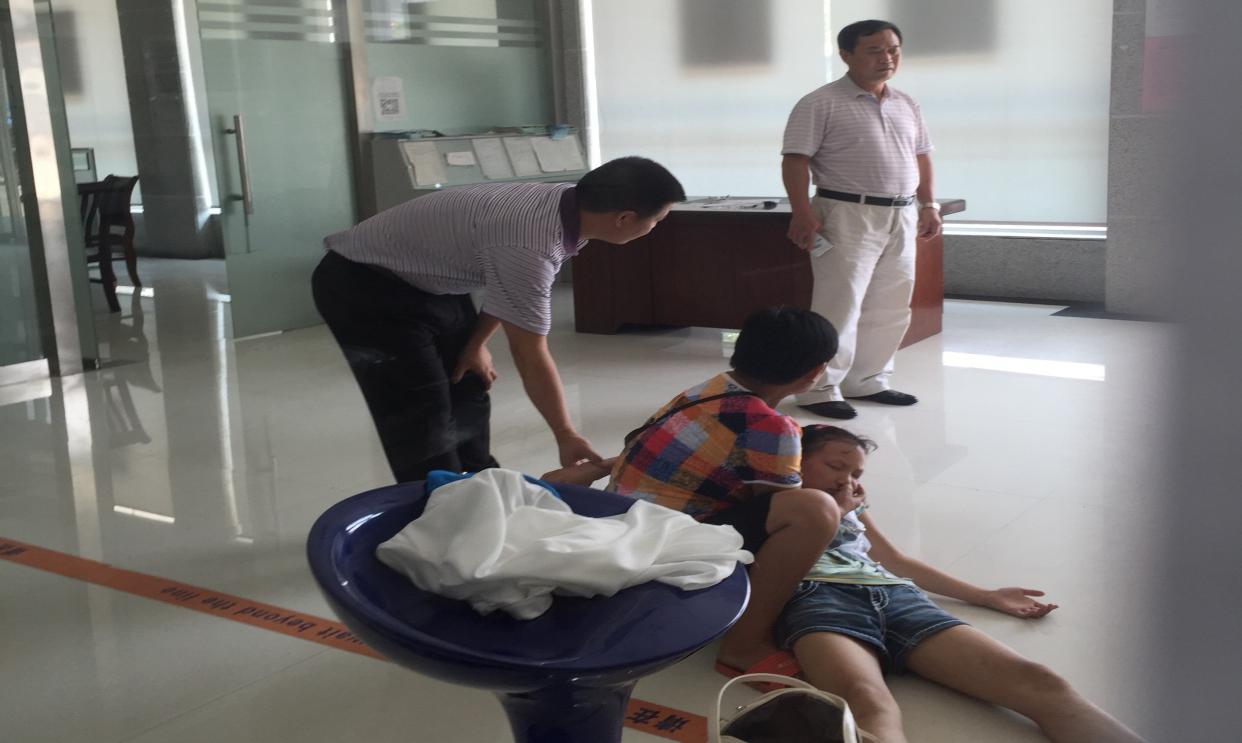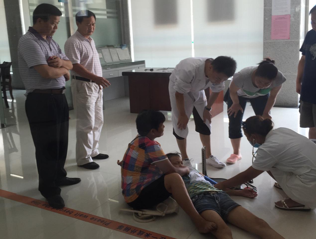 一声凄惨的尖叫声划过夏日长空,正在食堂吃饭的蒿子港支行员工立马放下碗,跑向大厅,只见在空旷的营业大厅,地上躺着一个6、7岁左右的小女孩,旁边蹲着一个哭哭啼啼的大娘,还有三位坐在休息椅上乘凉的发呆工人。行长黄绵辉走近大娘,那大娘看到救星似的喊着“好人好人,救救我孙女”没说上一句完整的话又哭上了“上午才出院呐,路远……路过你们农商行想休息会儿,吹吹空调……就这么倒下来,我……”