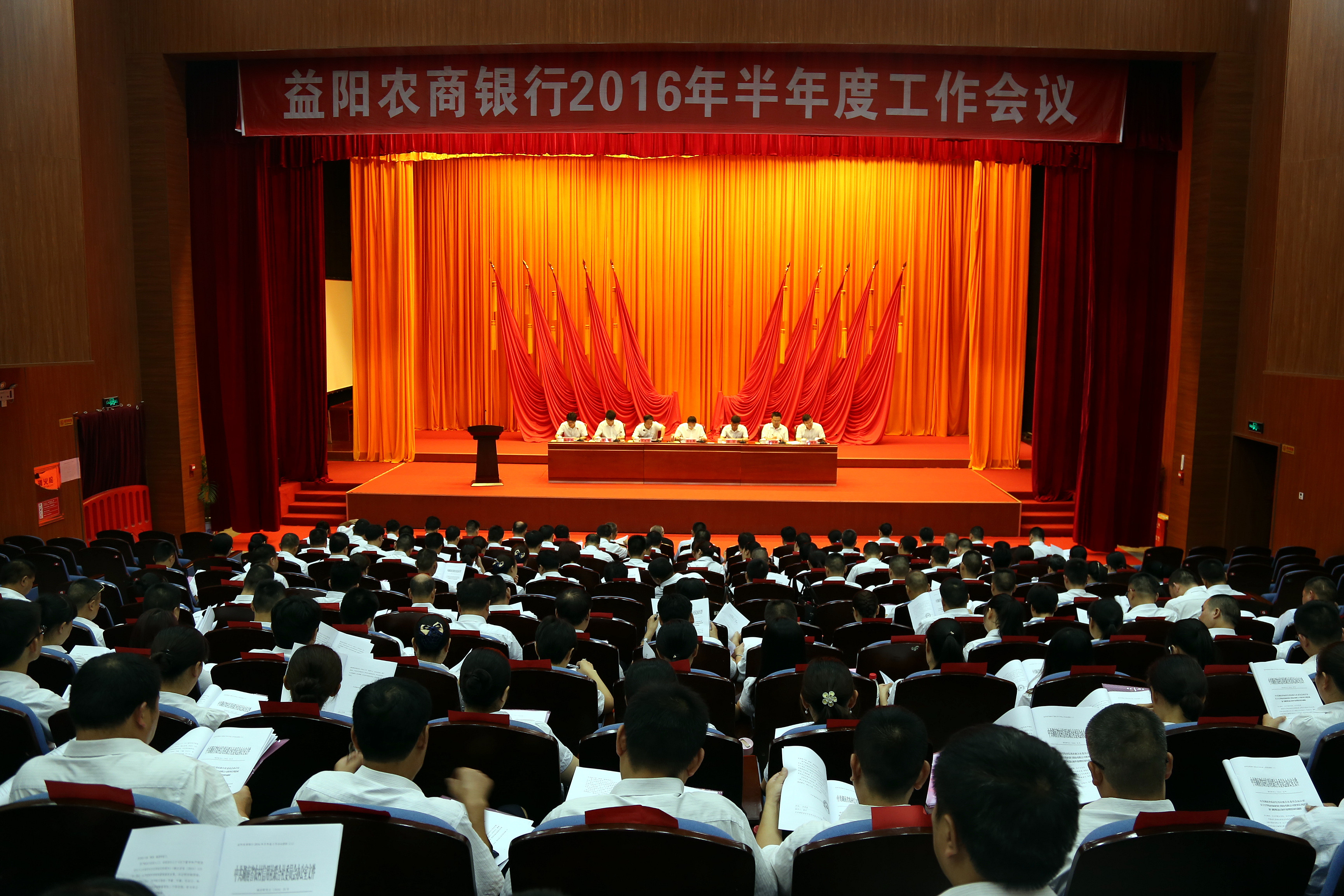 7月29日,益阳农商银行召开2016年半年度工作会议,贯彻落实上级主管、监管半年度工作会议精神,总结全行上半年工作成绩,分析存在的不足,对下半年工作进行安排。总行全体班子成员,正副协理员,部室正副经理,支行行长、委派会计、分理处主任及全体职工代表,共200余人参加会议。会议由蒋纲要副行长主持。