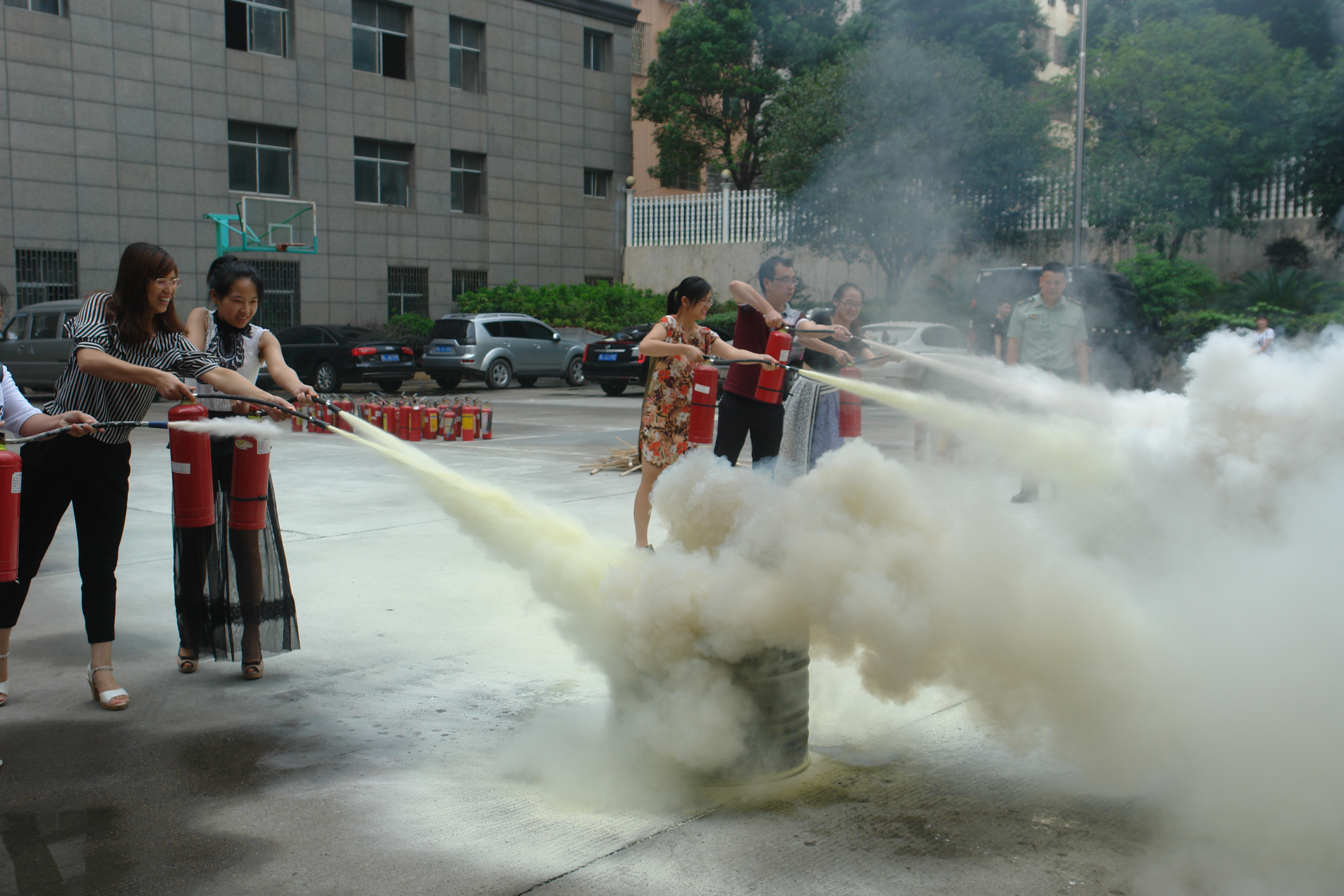 8月3日下午,桂阳联社机关院内浓烟滚滚,消防队员及百余名员工手持灭火器灭火,原来这是该联社邀请县消防大队工作人员为职工安排的一次灭火器使用演习。