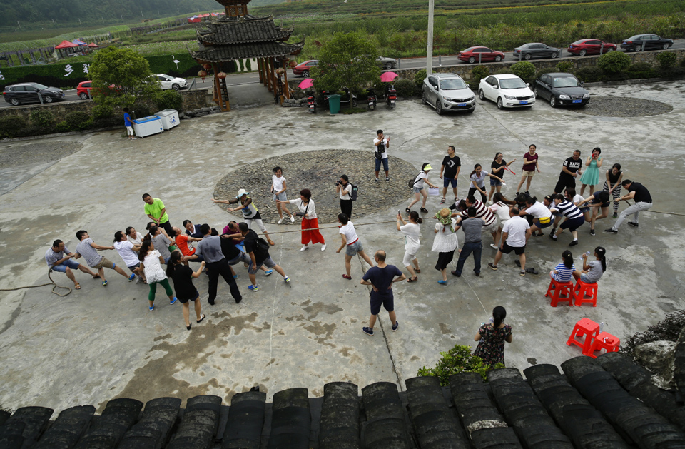 8月6日,适逢里约奥运会开幕日,新晃农商银行58名员工及家属利用周末,自费前往比邻的贵州玉屏县老寨村“北侗庄园”开展“我运动、我健康”为主题的户外健身活动。踢毽子、绑腿跑,集体跳绳、拔河等活动把北侗庄园嗨翻了天。