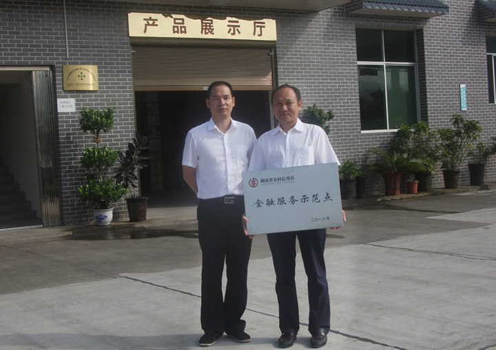 8月10日,新晃农商银行董事长蒲少忠,来到县小肥牛食品有限公司,将湖南省农村信用社颁发的“金融服务示范点”牌匾送到该公司董事长田先江手中。这意味着该公司已跻身到全省农信系统扶持的一百个规模龙头企业之一,享受一些列金融直通车服务。