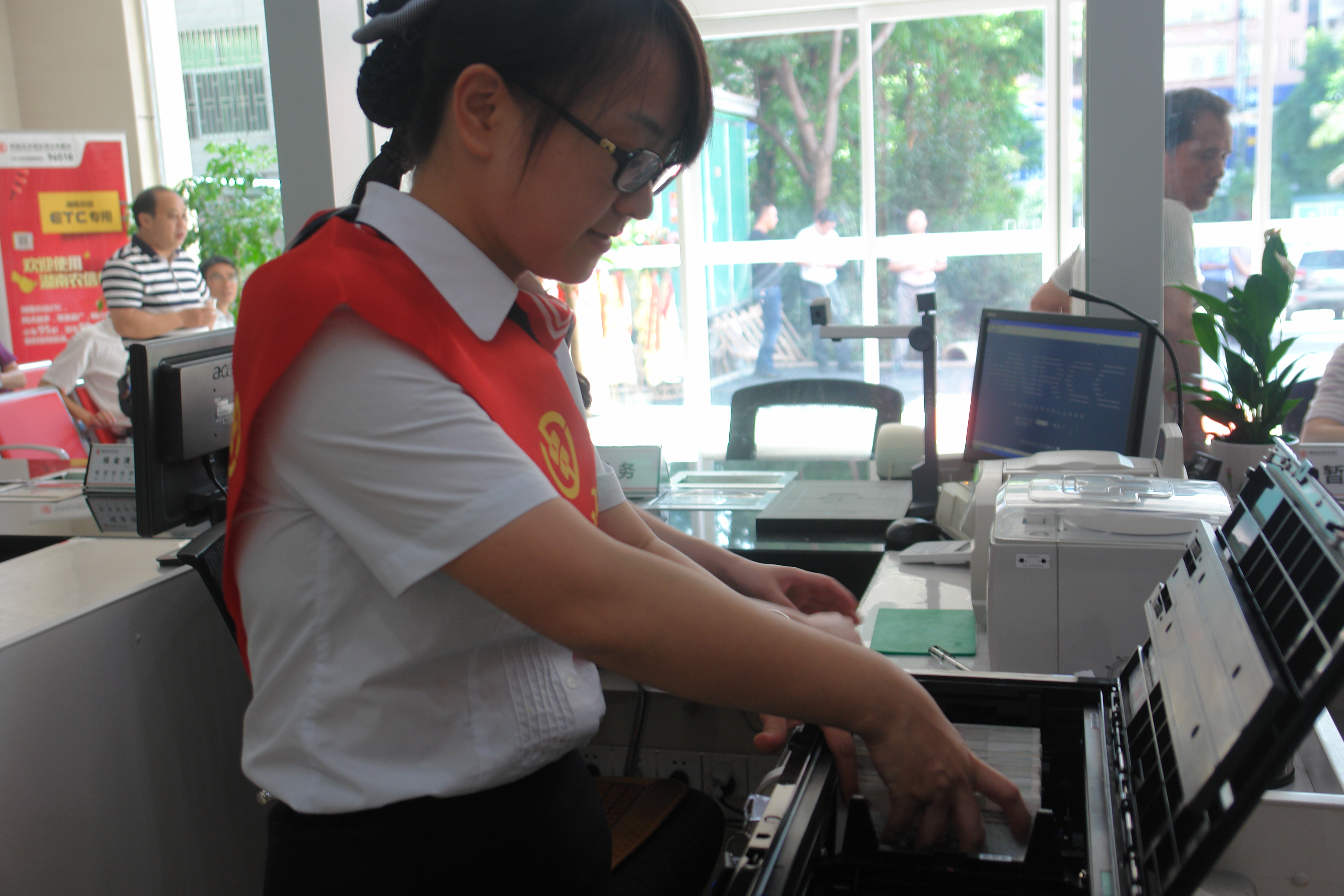 工作人员为自助设备添加零钞