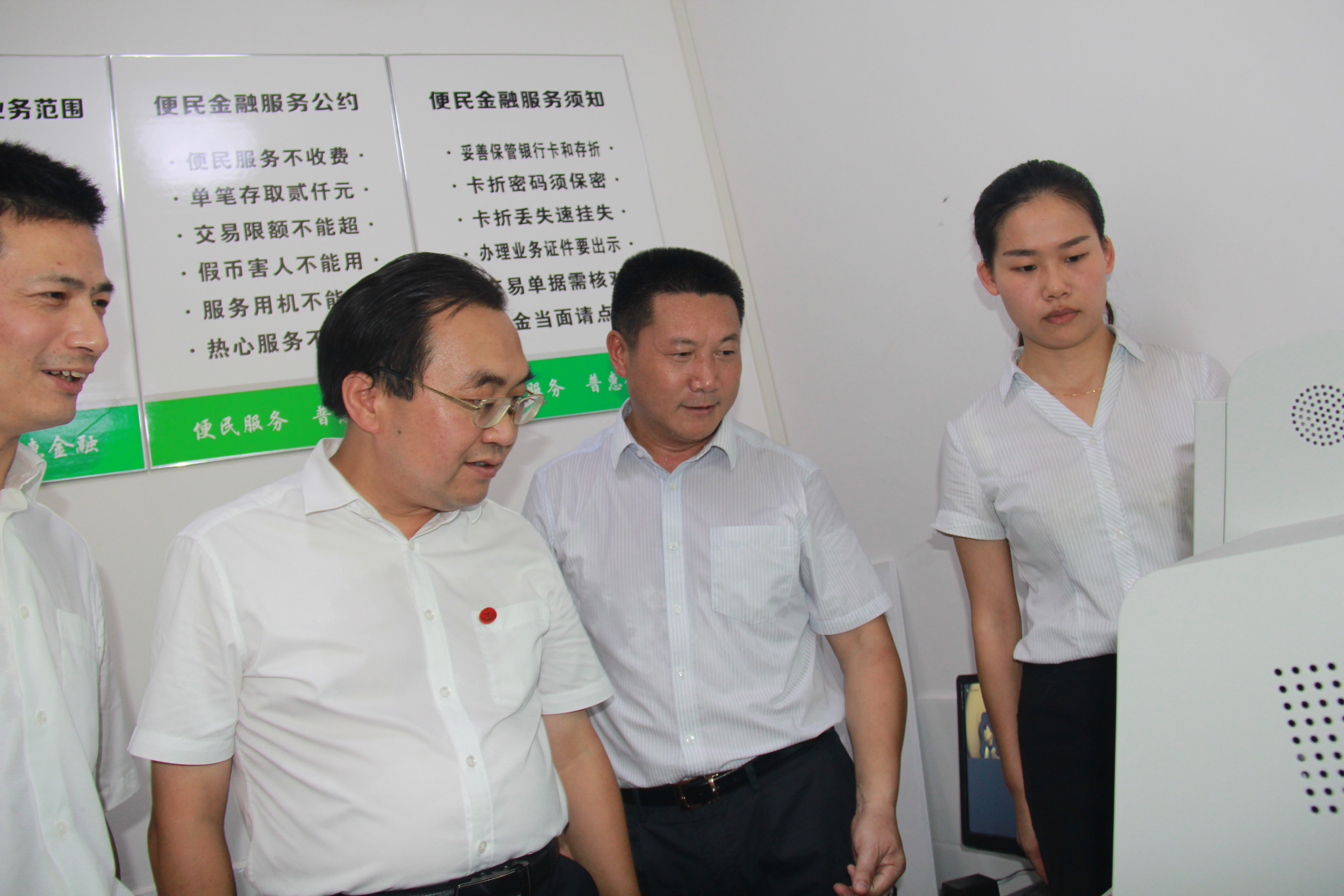 宁乡农商银行董事长卢国军陪同周辉书记等县委常委们参观扶贫服务站