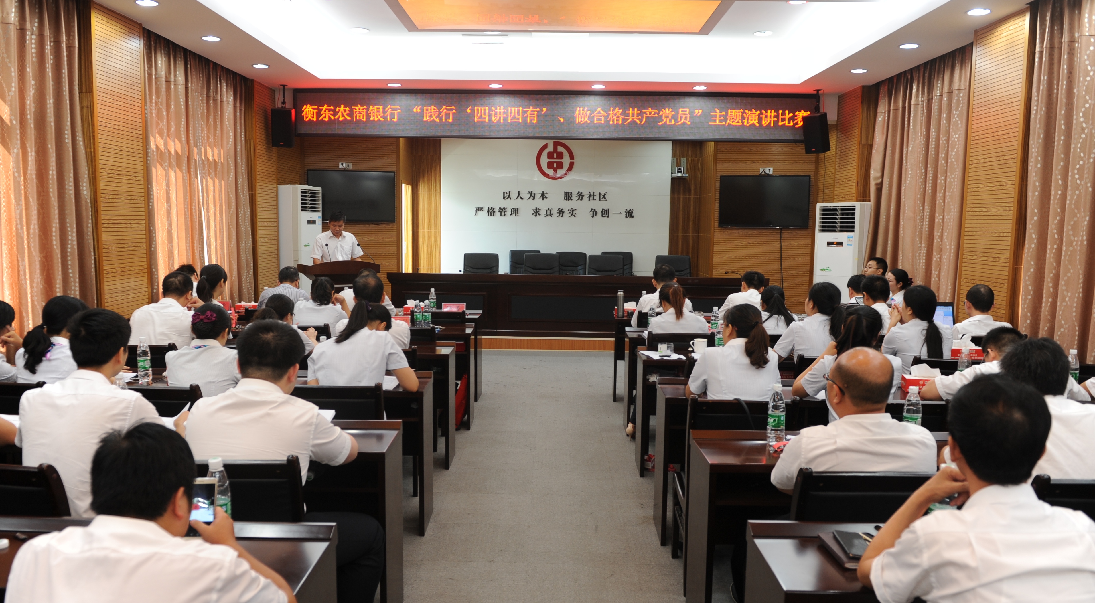 8月18日上午,衡东农商银行在总行老五楼会议室举行“践行‘四讲四有’、做合格共产党员” 主题演讲比赛。