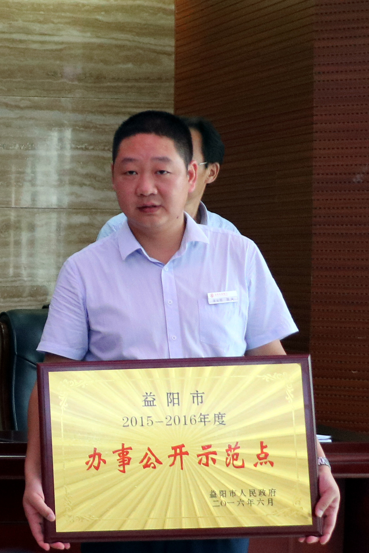 8月23日,全市公共企事业单位办事公开示范点授牌会议在益阳农商银行总行二楼会议室举行,市委常委、常务副市长杨跃涛为全市53家办事公开示范点授牌。