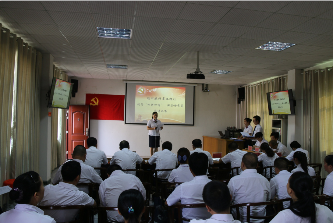 8月24日上午,靖州农商银行组织开展了“践行‘四讲四有’、做合格党员”主题演讲比赛,为参加省联社怀化市办选拔赛进行了精心的准备。来自机关和基层共8个支部16名党员参加了此次比赛。