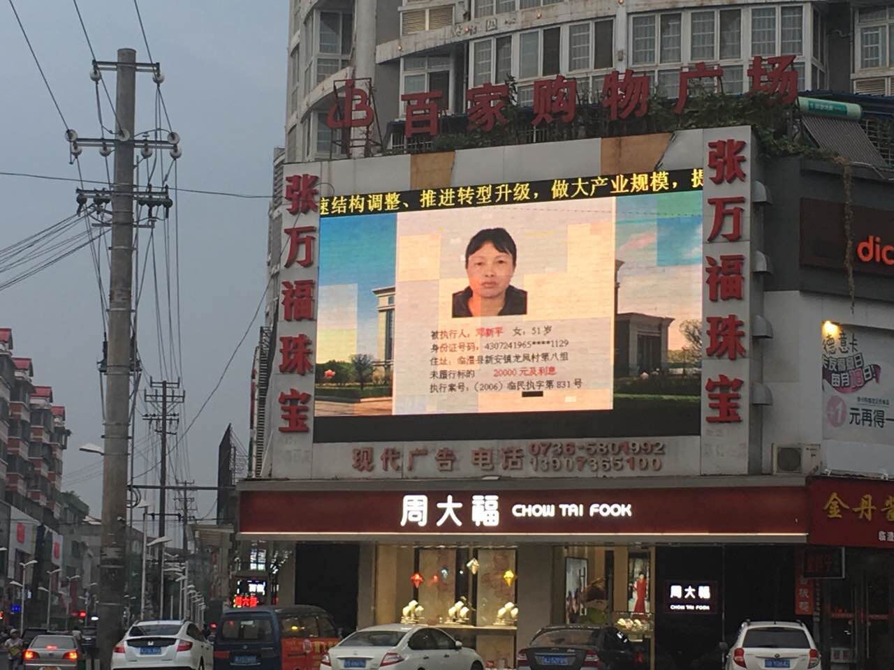 “看,XXX原来是老赖!丢脸丢大发了,还上“大屏幕“啦。。。”几名过往的群众驻足在临澧县百佳购物广场上方的超大LED显示屏下,并指指点点的议论着。