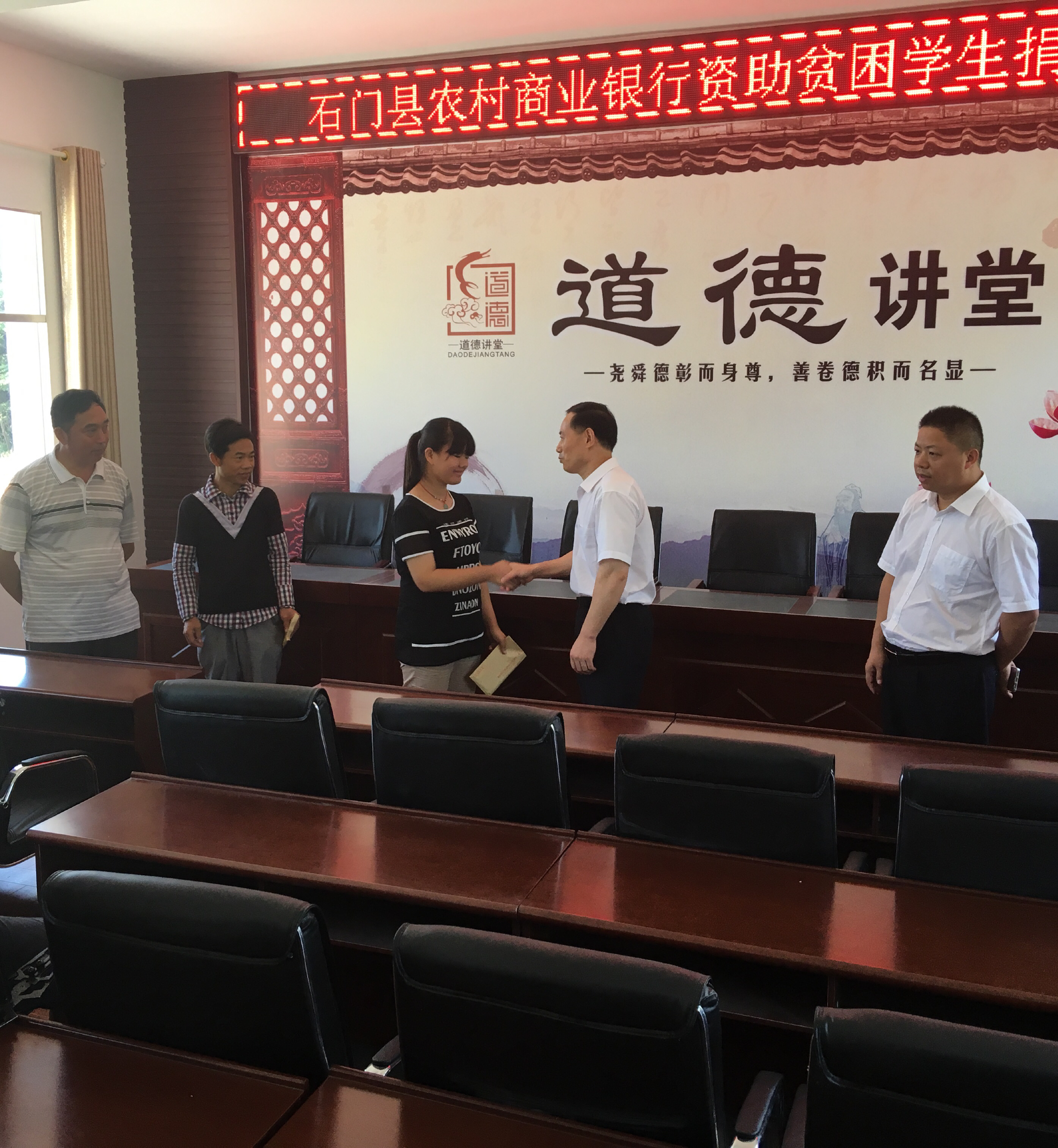 (杨董事长为贫困大学生熊凤菊赠助学金)