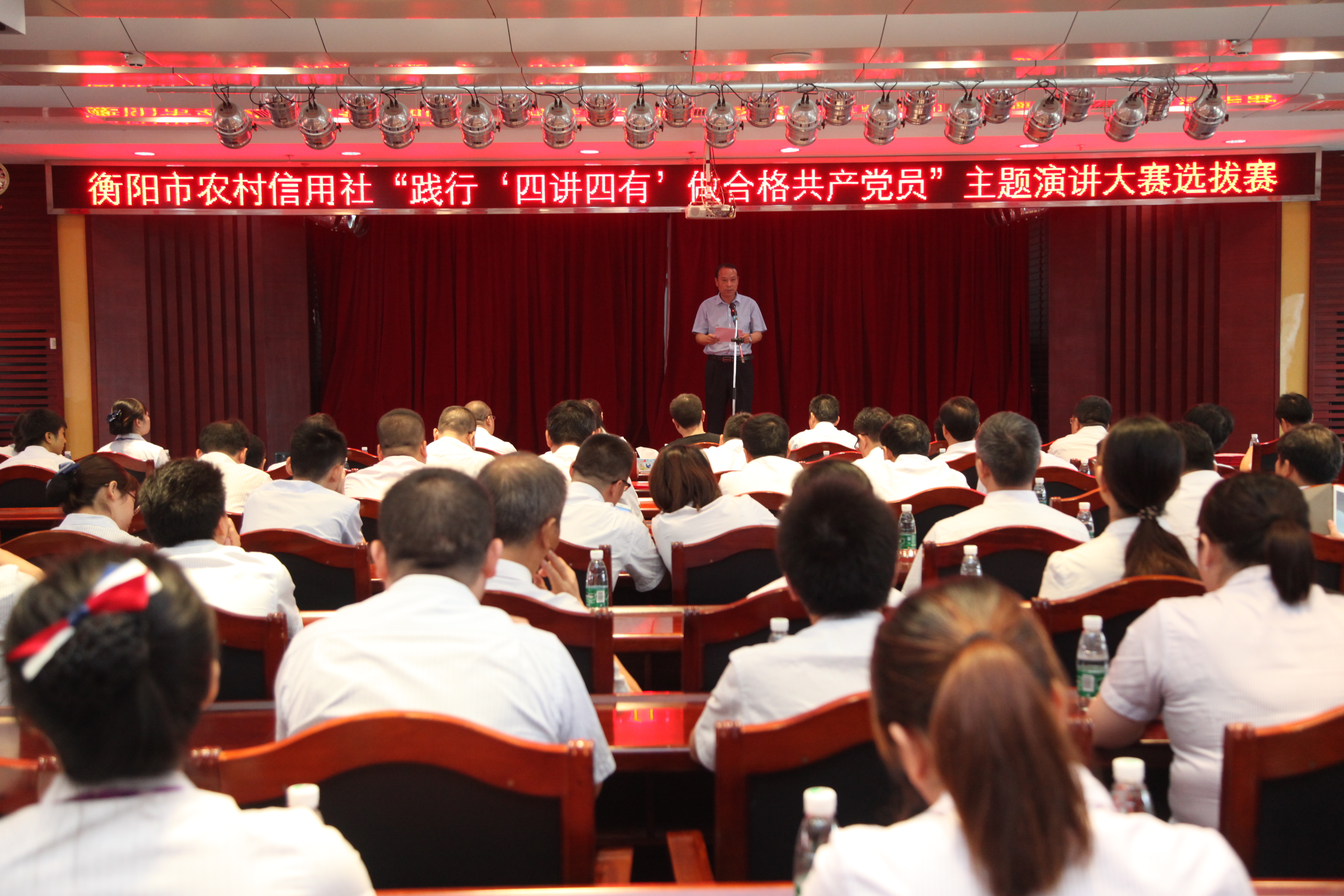 为进一步引导党员坚定理想信念、提高党性觉悟,营造做“四讲四有”合格共产党员的浓厚氛围,9月6日上午,衡阳办事处隆重举办了“身边人、身边事,践行‘四讲四有’”主题演讲比赛。衡阳办事处全体党组成员、部门负责人,各行社董(理)事长及分管领导观看了比赛。