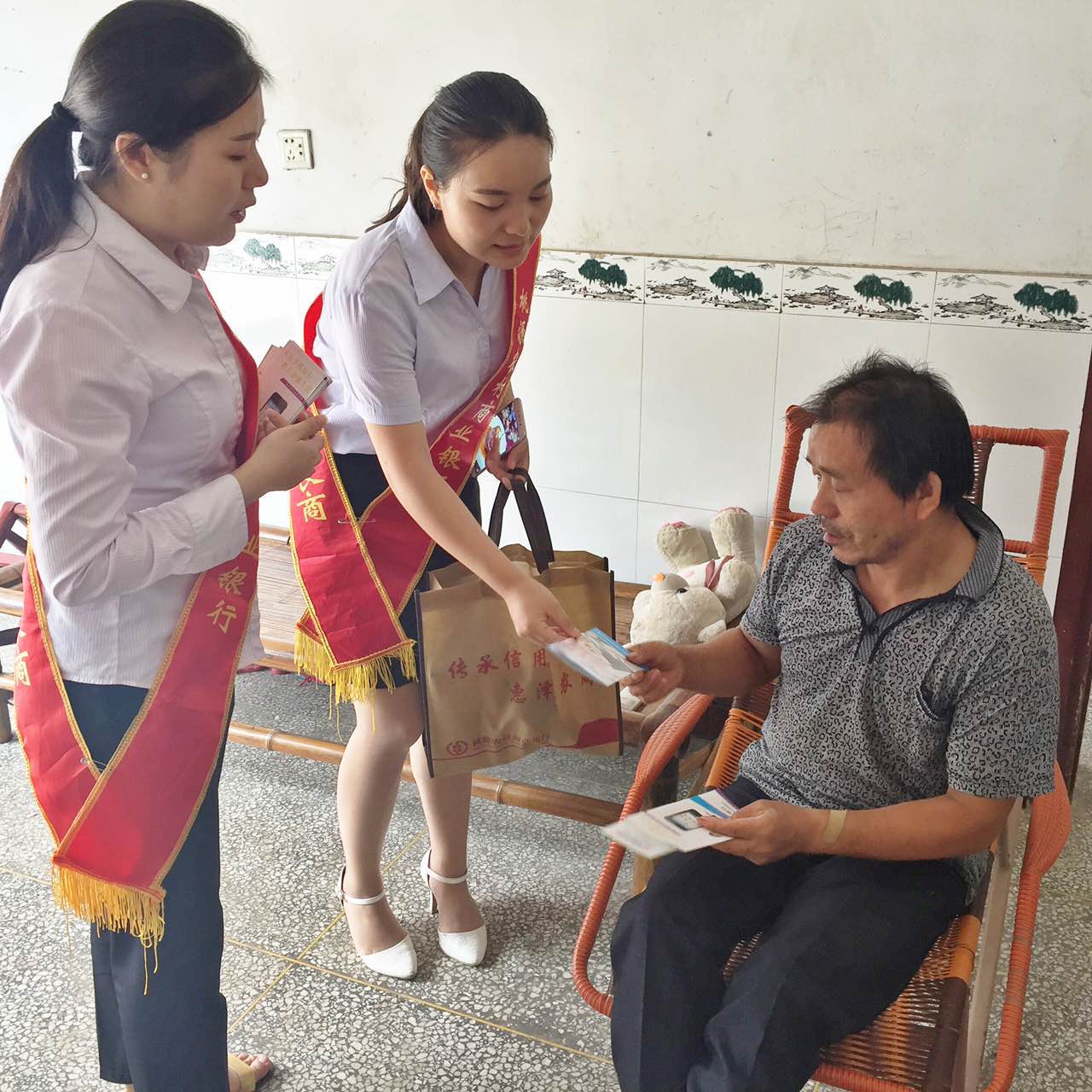 9月8日,桃源农商银行“送金融知识进乡村”活动走进了该县杨溪桥乡。根据当地山多、田少、人口稀的实际情况,该行改变以往“固定设点,集镇宣传”的模式,将宣传“阵地”向“客户”前移,以“队员分组,走村入户”的形式深入广大农户家中发放资料,细分客户,现场演示,现场讲解,送上一道“金融知识,金融产品,形象展示”的“服务大餐”。