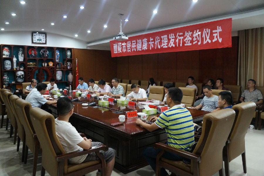 9月14日下午,醴陵市居民健康卡代理发行签约仪式在我行三楼会议室举行。市卫计局、市五家合作公立医院及我行相关领导出席了签约仪式。