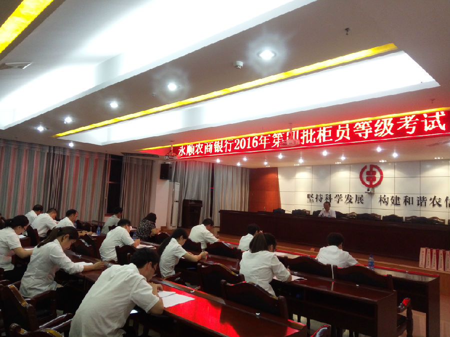 9月28日,永顺农商银行举行第四批柜员等级考试。今年以来,为加强柜员队伍建设,提高柜员综合业务素质,激发员工工作激情,永顺农商银行对柜员实行等级管理。根据柜员工作业绩指标、业务知识及业务技能、工作质量、结合现实表现等,按百分制计分考核,评定柜员等级。柜员当年获得的柜员等级工资系数作为下一年度本人基本工资、绩效工资系数的基数。
