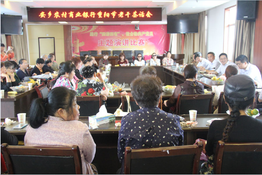 秋风送爽,丹桂飘香。10月9日上午,安乡农商行在六楼会议室召开退休员工重阳节茶话会。50多名老同志和行领导班子欢聚一堂,共议发展计,互诉农商情。茶话会在热烈祥和、其乐融融的气氛中进行。