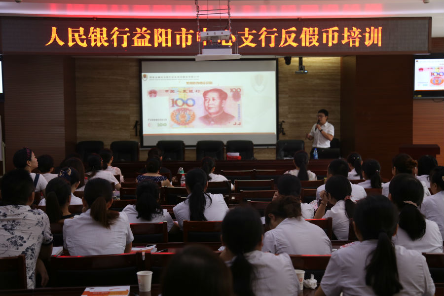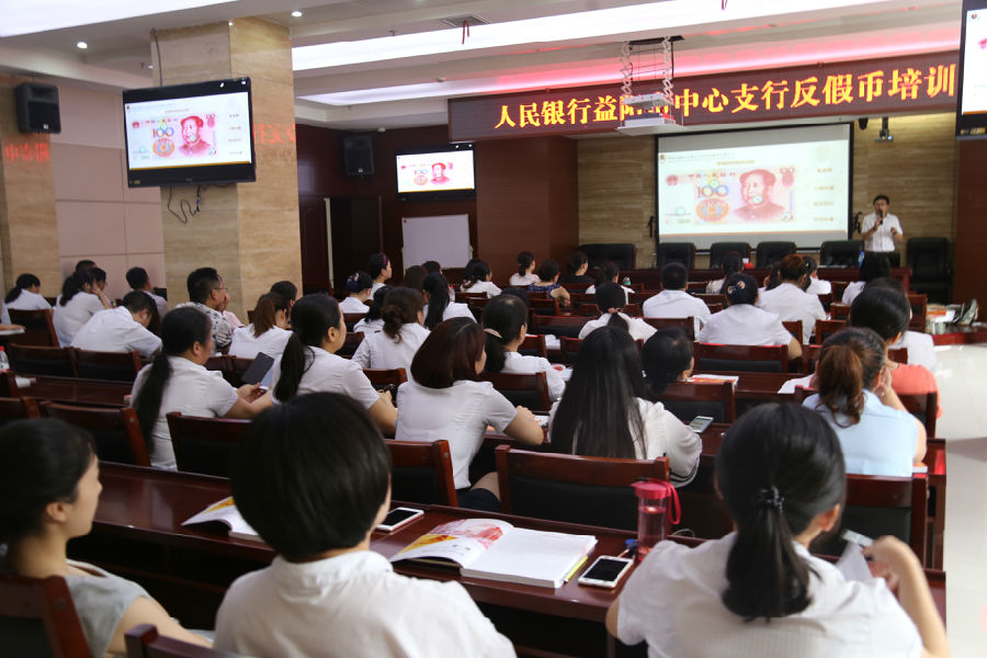 本次培训中,专家老师主要从以下几个方面进行了直观、系统的讲解:一是介绍了近几年来反假币工作的开展形势,以及打击制贩假币违法案件取得成效;二是介绍了从第一版开始各版别历史和特征,重点介绍了第五套人民币各种券别的防伪知识,参照样张和宣传材料介绍的防伪特征一一进行对比,让银行柜员了解、掌握人民币的防伪特征和假币识别方法,全面提高柜员的假币识别能力和鉴别防范能力;三是学习《残缺污损人民币兑换管理办法》、《不易流通人民币挑剔标准》、《假币收缴、鉴定管理办法》以及《冠字号码查询解决纠纷工作指引》等法律法规。