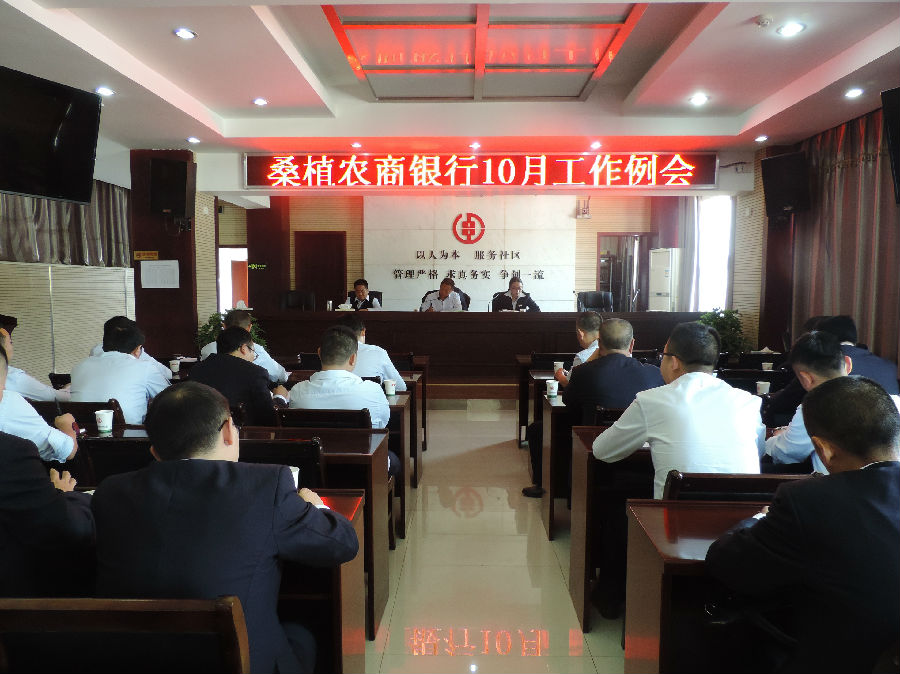 10月18日,桑植农商银行在家班子成员、全体中层干部在总行8楼会议室参加省联社三季度业务经营形势分析视频会议。下午,董事长主持会议,及时贯彻落实省联社会议精神。