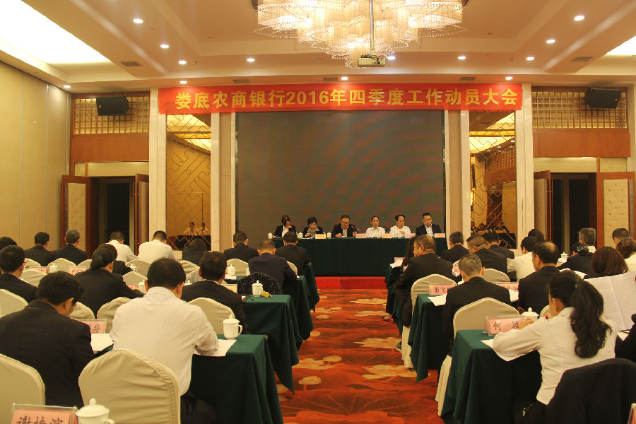 10月23日在娄底金和康年四楼会议室,娄底农商银行召开了2016年四季度工作动员大会,总行班子成员、各支行正、副行长、农商行全体机关人员等,共计251人参加大会,大会由谢进华行长主持。