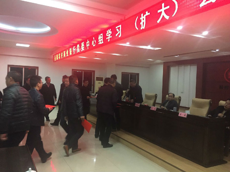 会上,组织观看了党员先锋模范视频,并学习了十八届六中全会公报。服务中心通报了网点监督检查情况,监事长明确了内控案防工作要求,行长对前期业务经营情况进行了点评并对后段业务工作作了部署。29位支行行长递交了全年目标任务、党风廉政建设目标及案件防控、安全保卫、消防管理、社会治安综合治理目标责任状。
