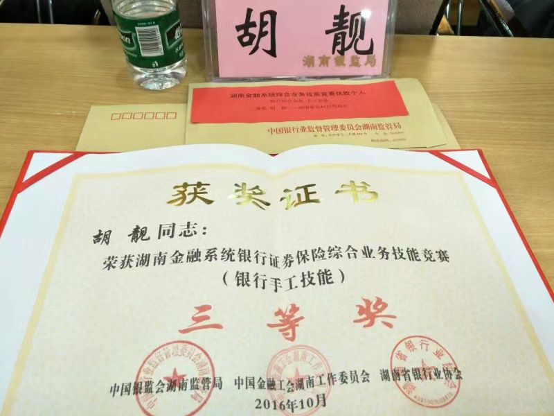 11月11日,2016年湖南省银行综合业务技能竞赛颁奖典礼在长沙举行。临澧农商银行参赛选手胡靓参加了此次颁奖仪式,并荣获手工技能竞赛“三等奖”。他所获得的奖项不仅为该行争得了荣誉,更向全省金融机构展现了农信员工业务技能的高水平和硬实力。
