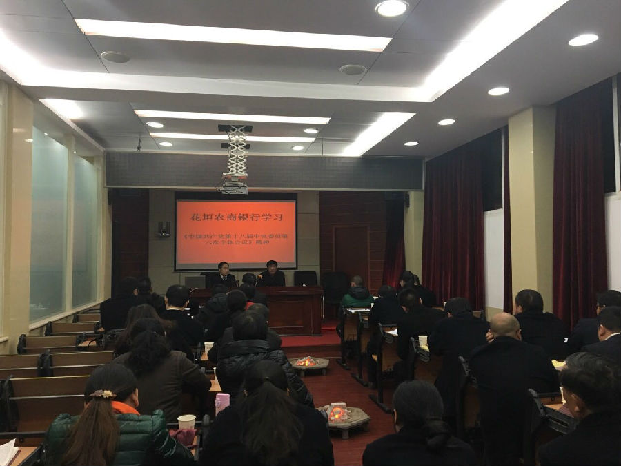 11月23日,花垣农商银行组织召开学习贯彻党的十八届六中全会精神专题会议,进一步学习贯彻党的十八届六中全会精神。总行党委班子成员、各部室经理、机关支部全体党员共42人参加会议。