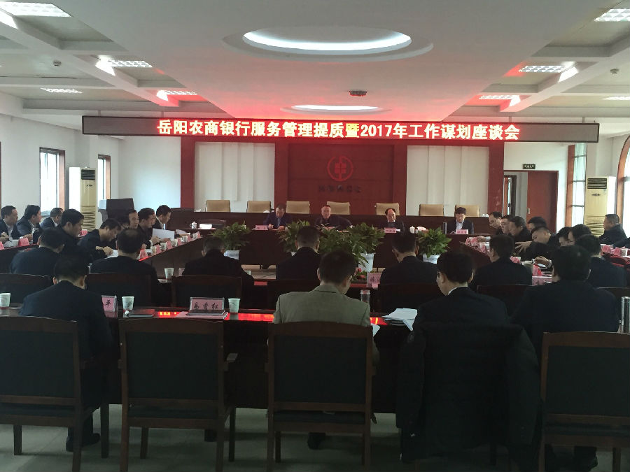 12月10日,岳阳农商银行组织召开了服务管理提质暨2017年工作谋划座谈会。总行领导班子成员、机关部室经理、各支行行长共50余人参加会议。